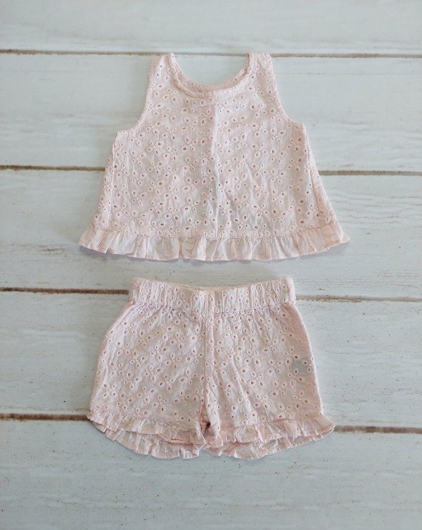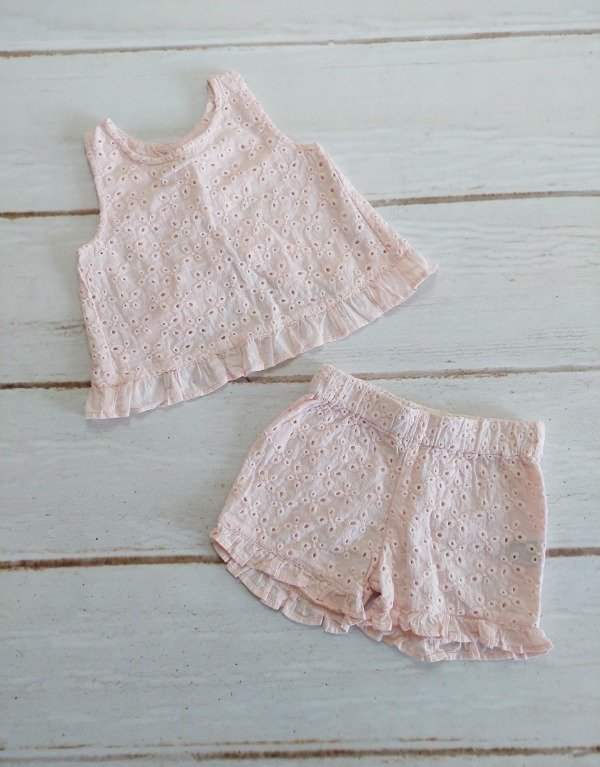 Conjunto short y camisita broderie rosa Pioppa 6 meses