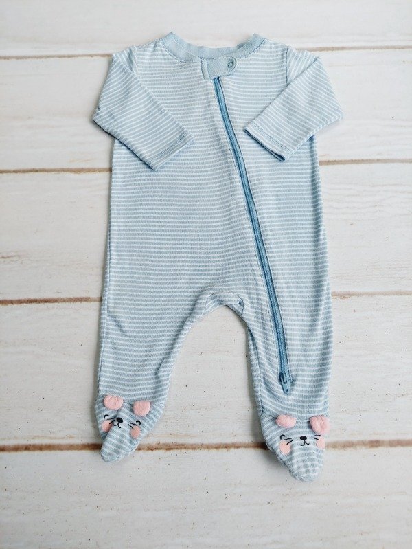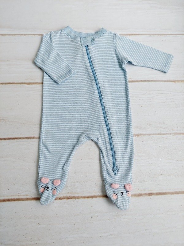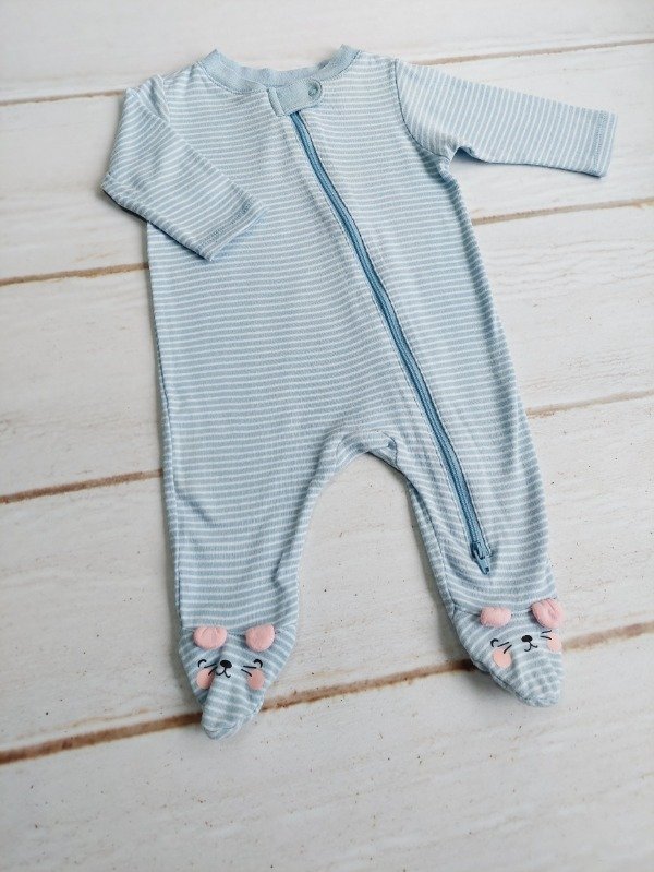 Enterito de algodón celeste rayado con detalles en rosa Old Navy 0/3 meses