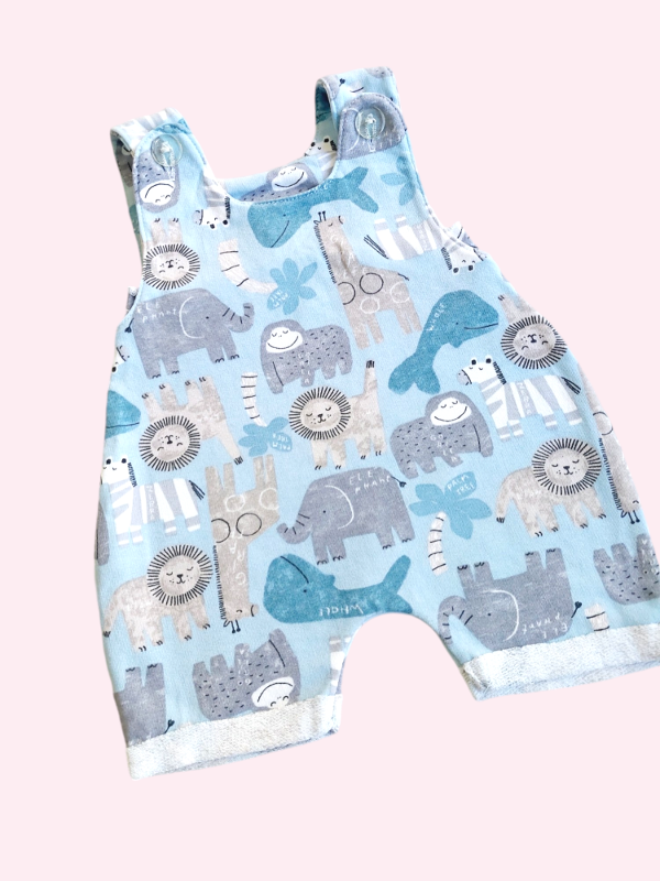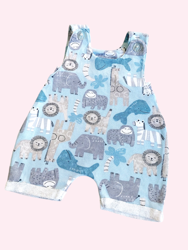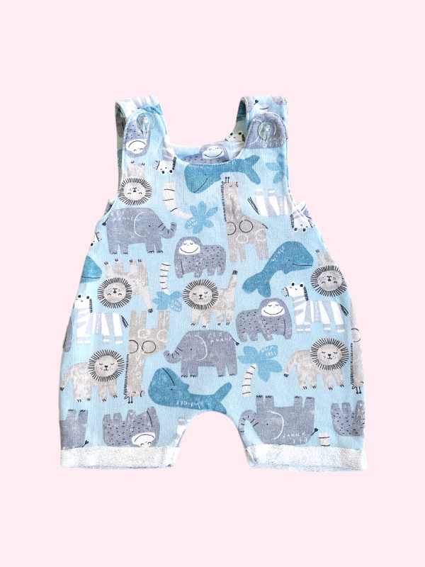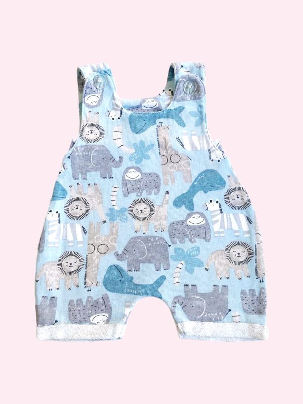 Jardinero de algodón celeste con animales 3 meses