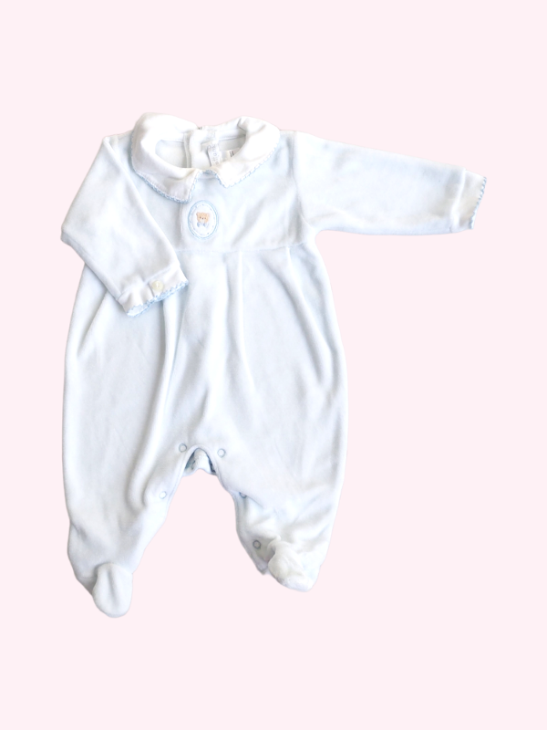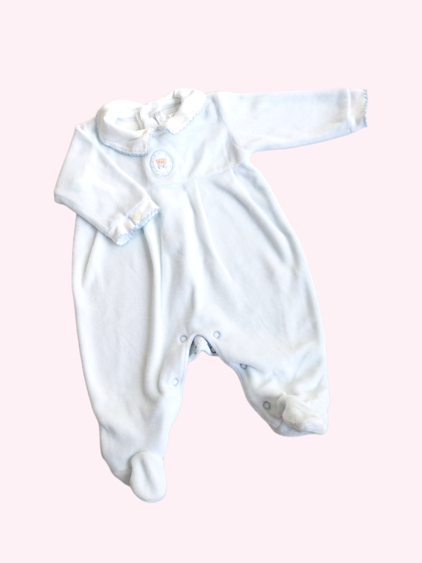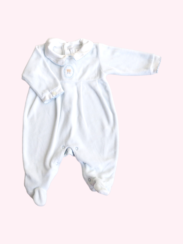 Pijama plush blanco con detalles en celeste Baby Cottons RN