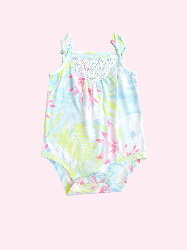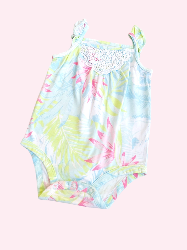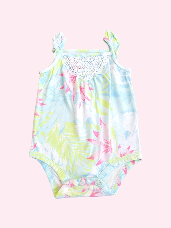 Body sin mangas con flores celestes y rosas con bordados Carters 12 meses