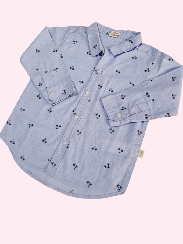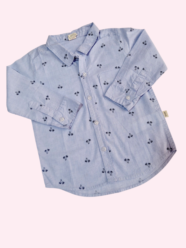 Camisa manga larga azul jaspeado con palmeras Cheeky 12/18 meses