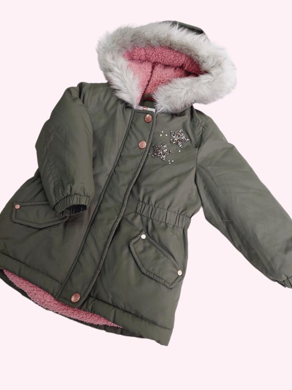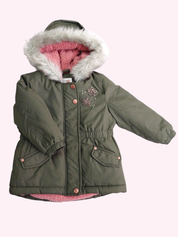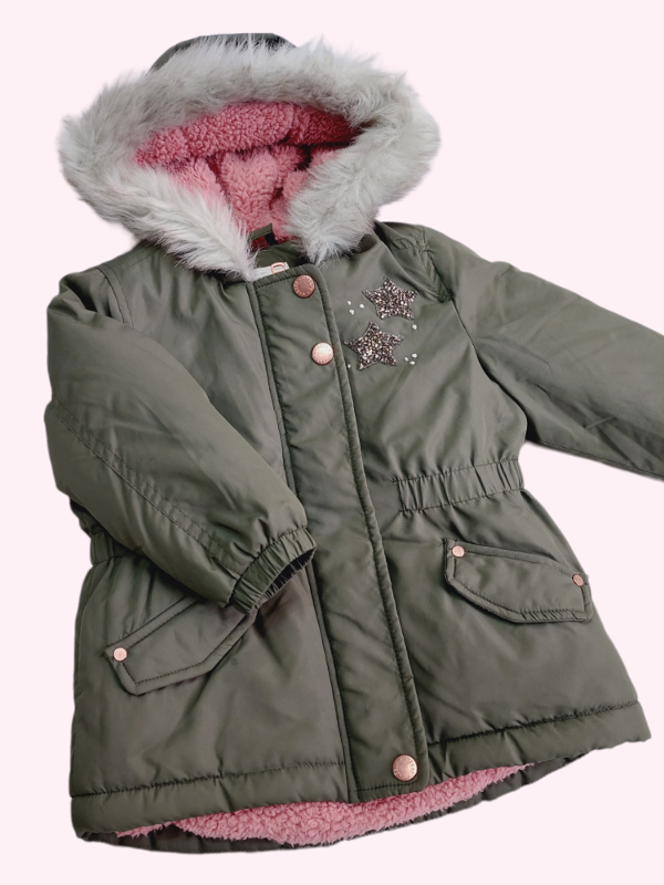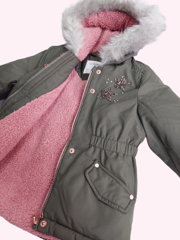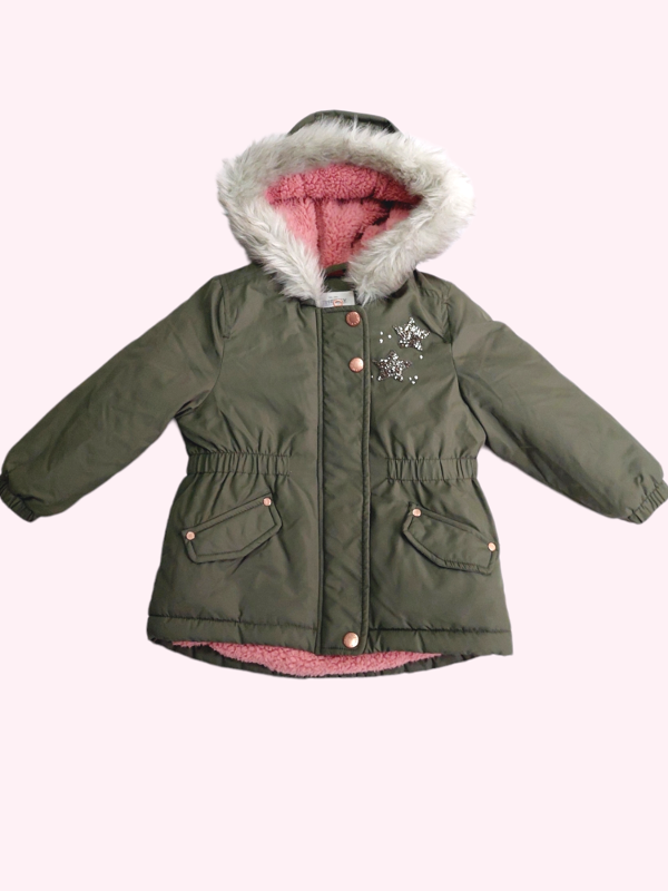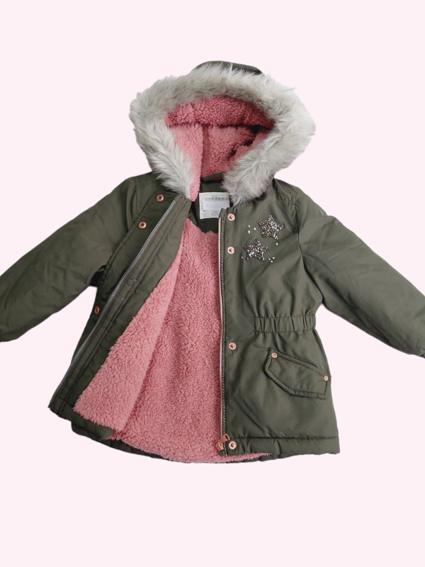 Campera de abrigo verde forrada en corderito rosa Cheeky 12/18 meses