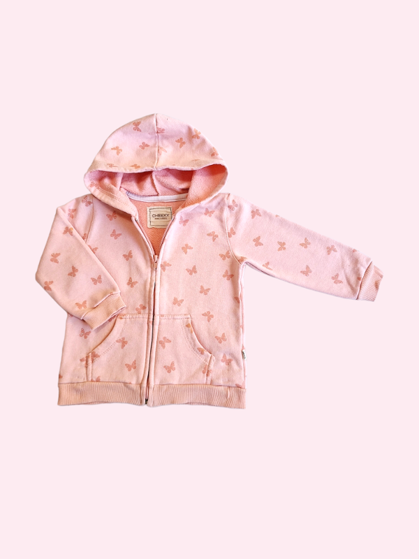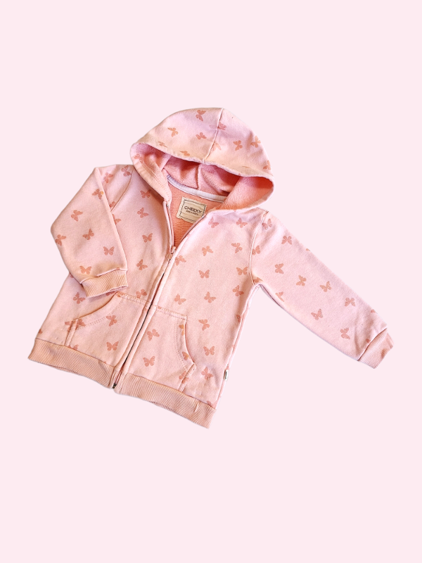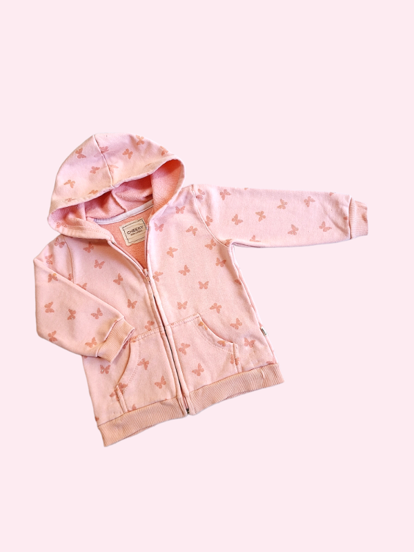 Camperita de algodón rosa con mariposas y capucha Cheeky 12/18 meses