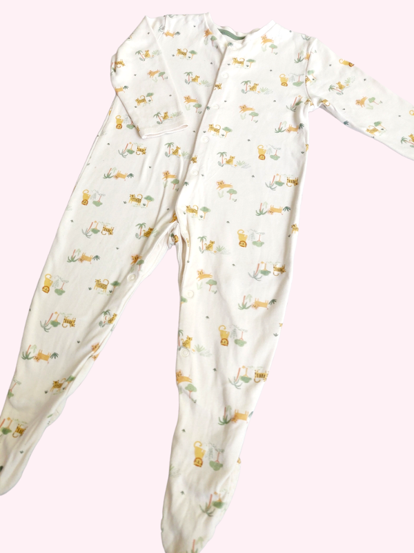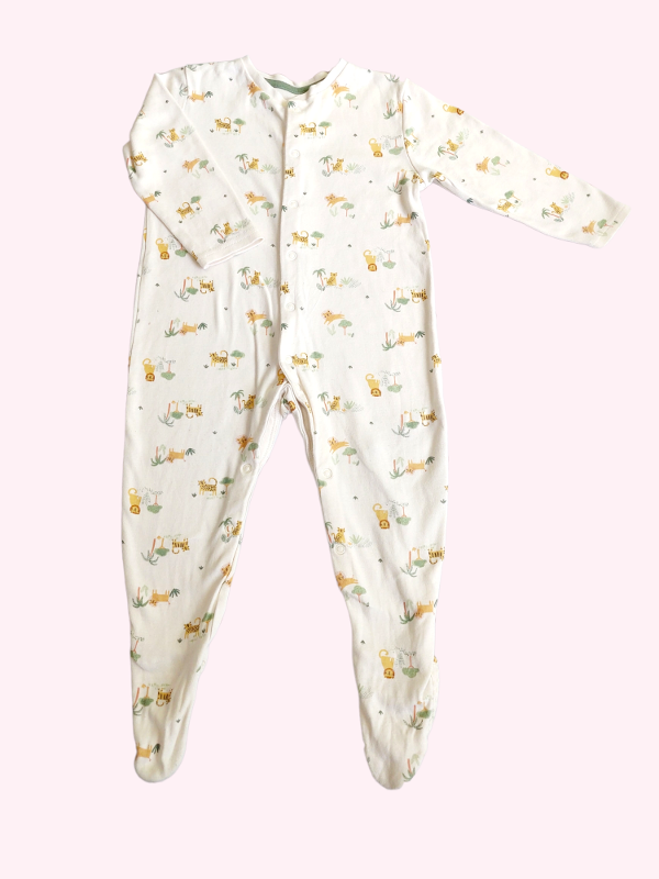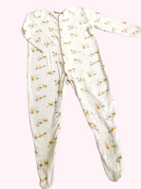 Pijama de algodón abotonado crema con animalitos y hojas Primark 12/18 meses