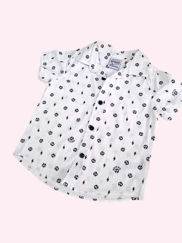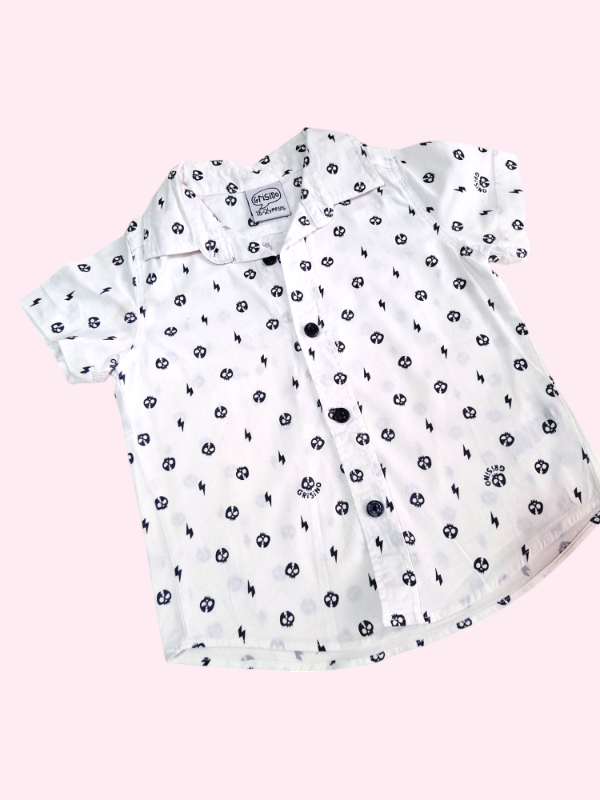 Camisa manga corta blanca con caritas Grisino 18/24 meses