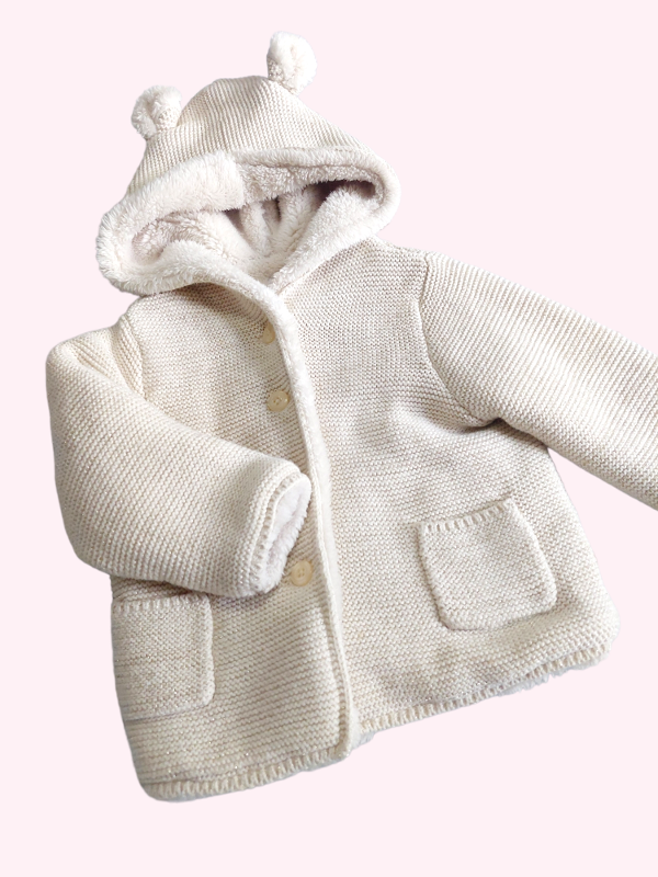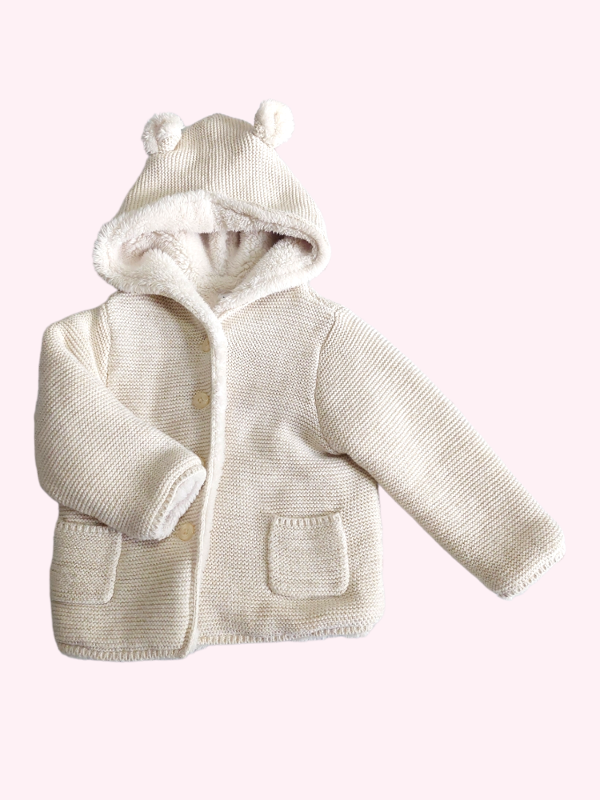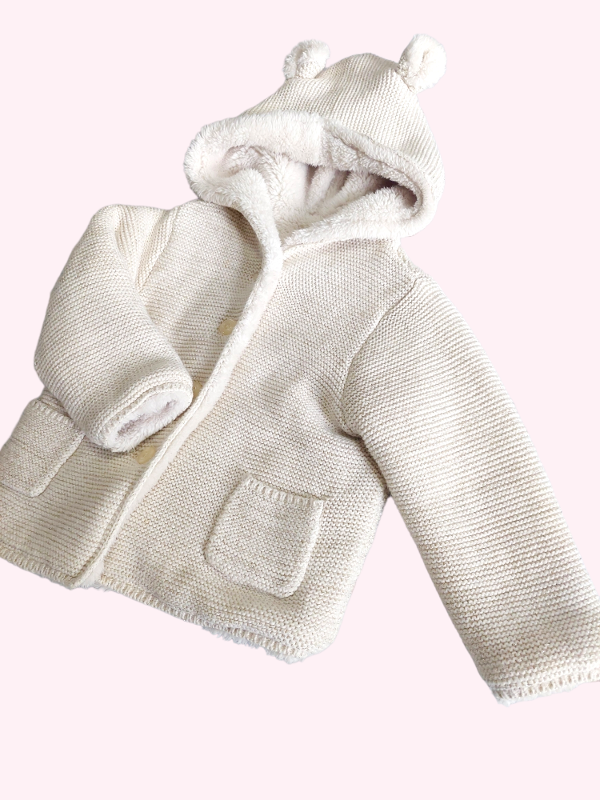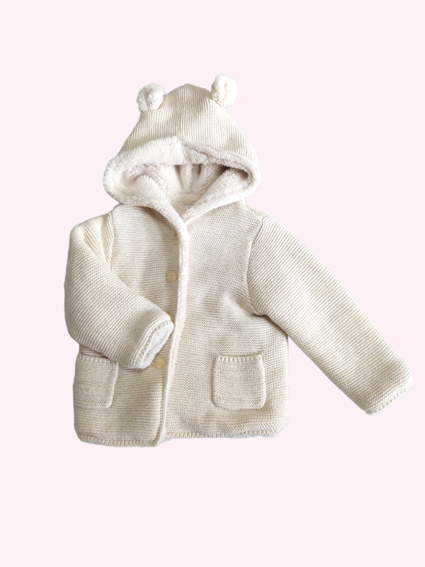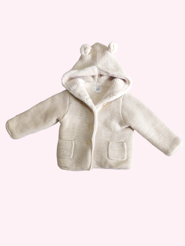 Camperita tejida crema y dorado forrado en peluche con capucha GAP 18/24 meses