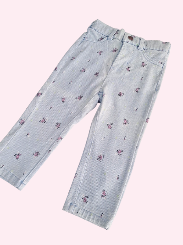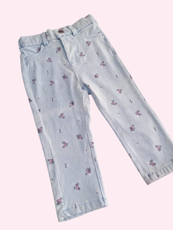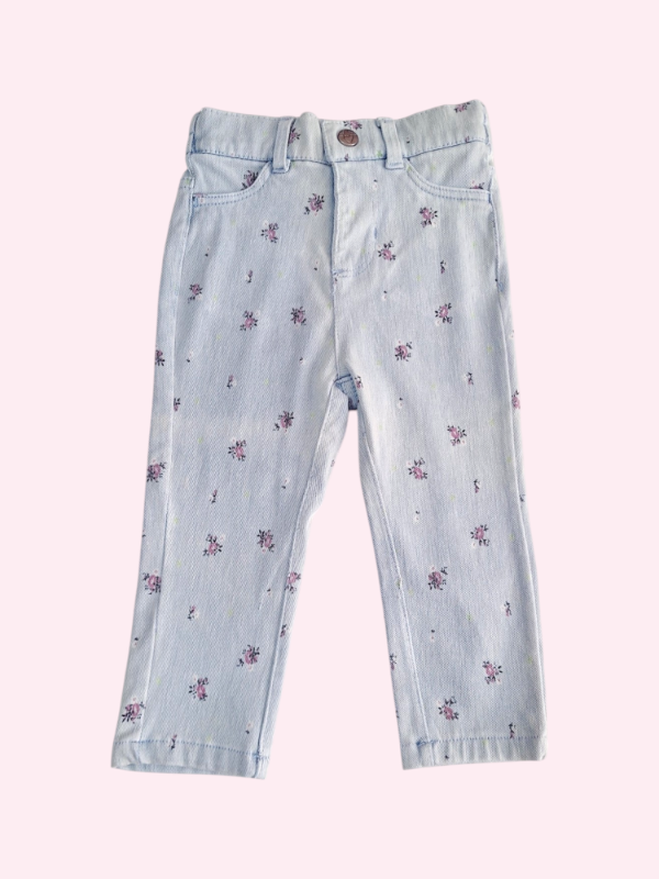Leggings de jean claro con flores lilas YAMP 18 meses