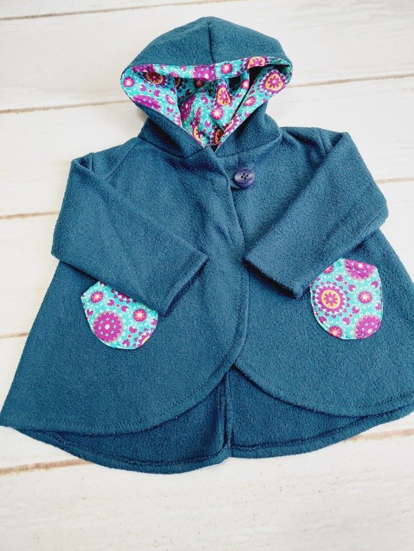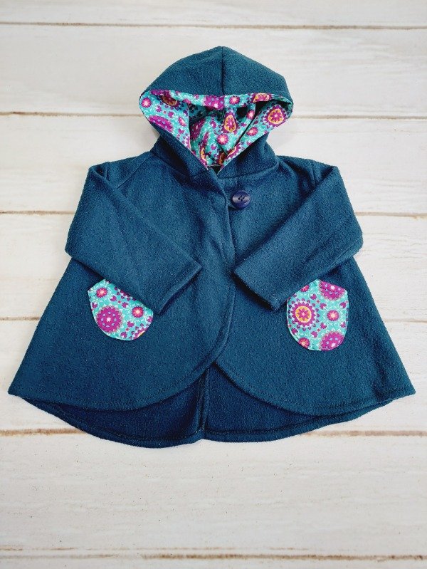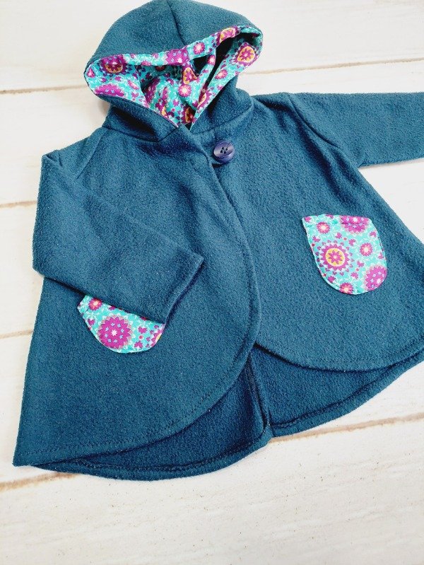 Polar verde estilo capita con bolsillos y capucha estampados 18/24 meses