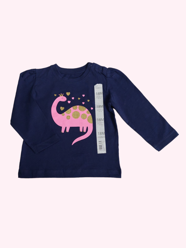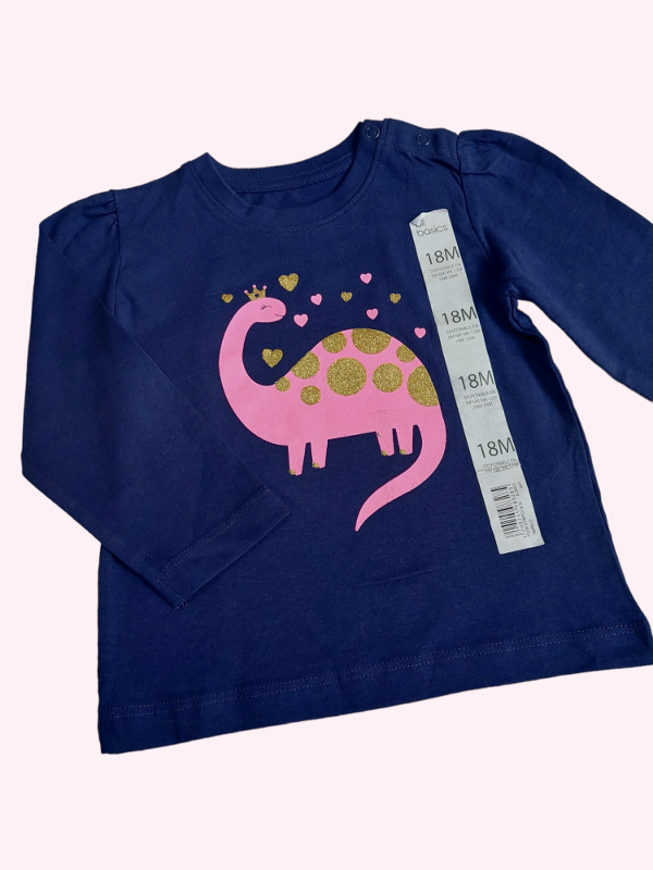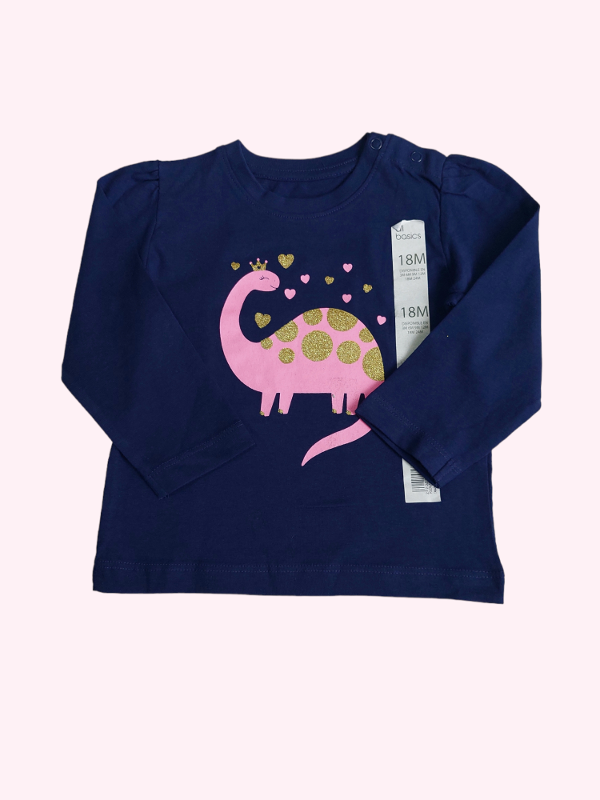 Remera manga larga azul con dino All Basics 18 meses NUEVA