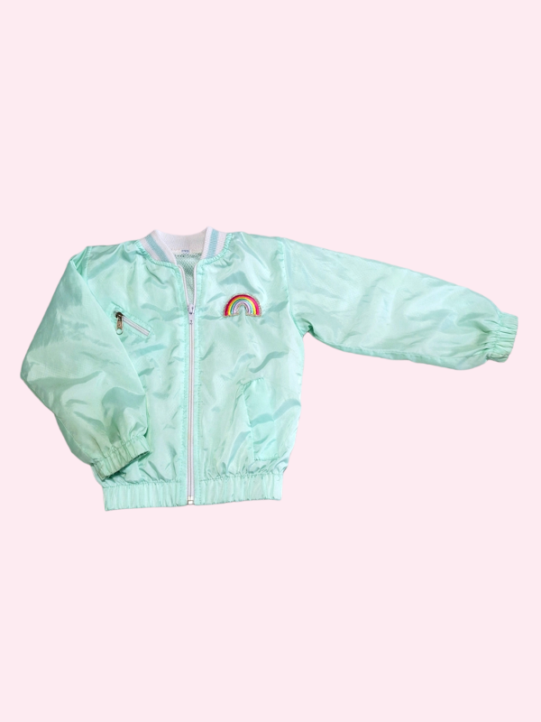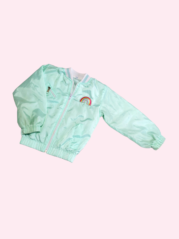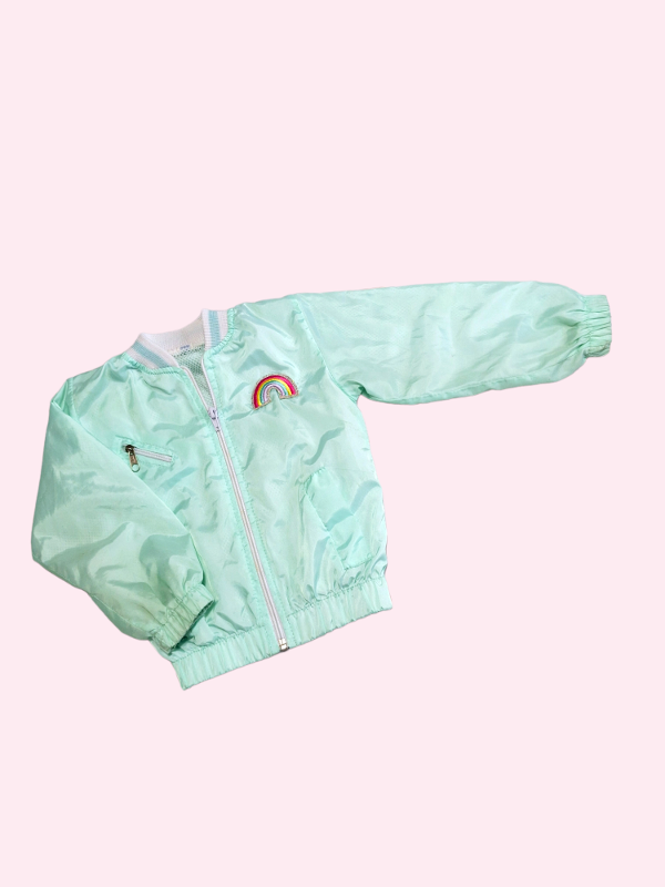 Campera rompeviento verde aqcua con arcoiris 2 años