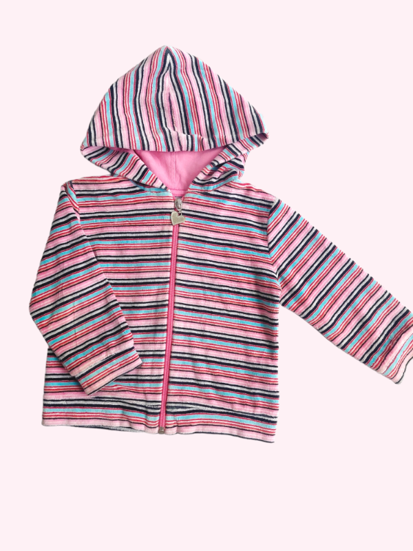 Camperita de plush rayada rosa y celeste Grisino 2 años