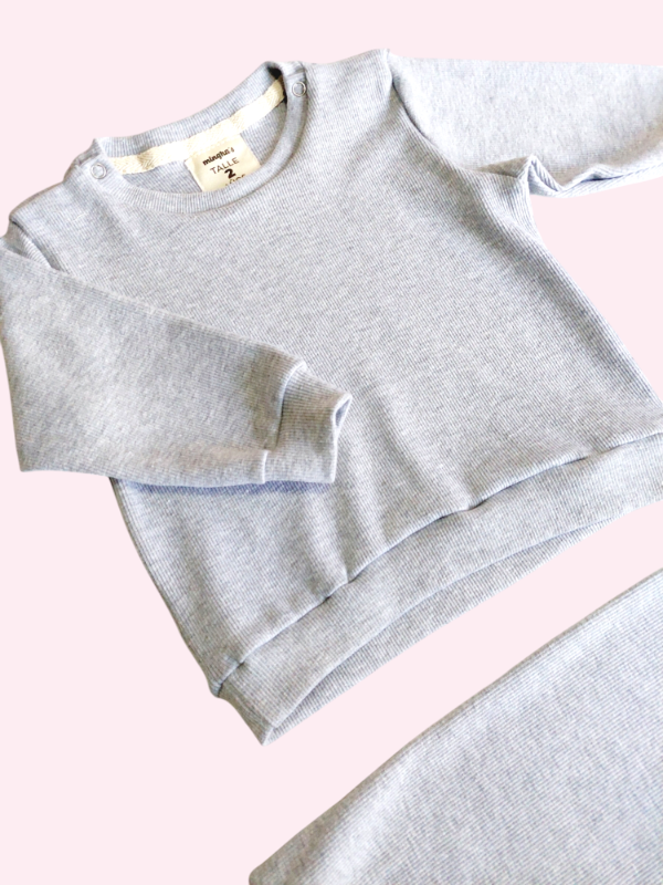 Conjunto morley con botones gris claro Minghas 2 años NUEVO
