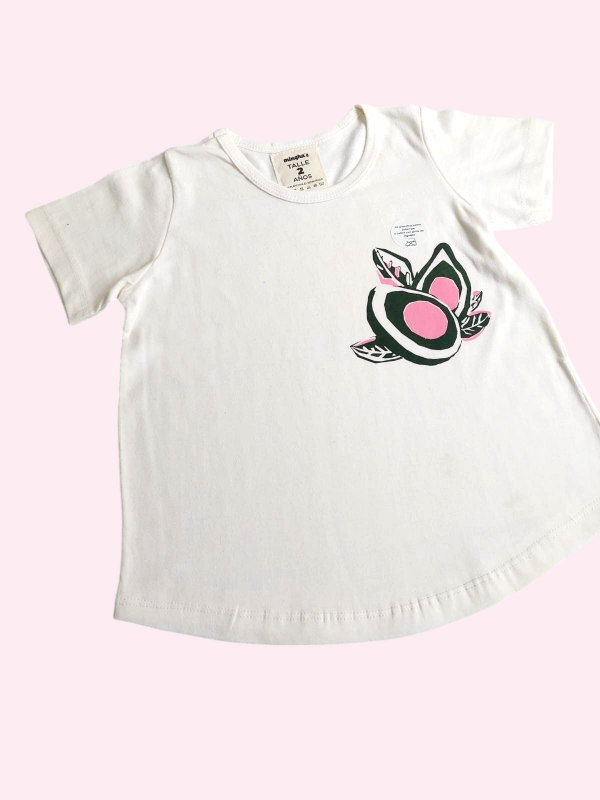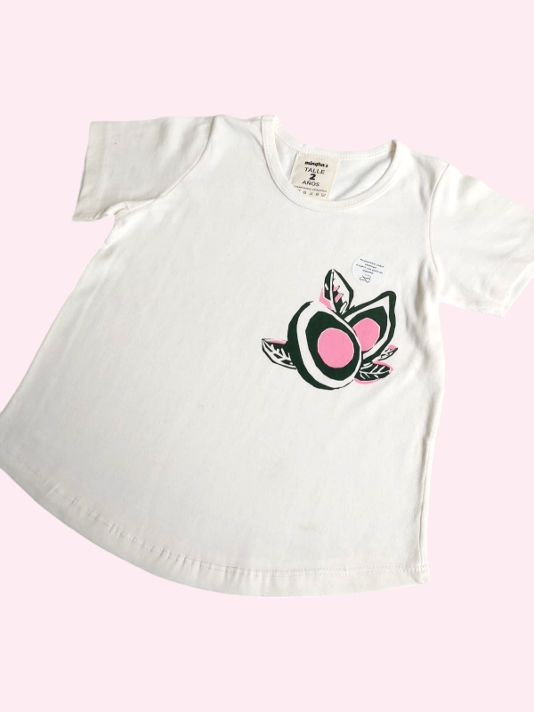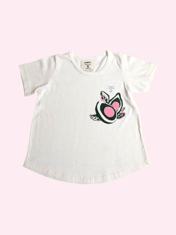 Remera manga corta blanca con palta rosa Minghas 2 años NUEVA