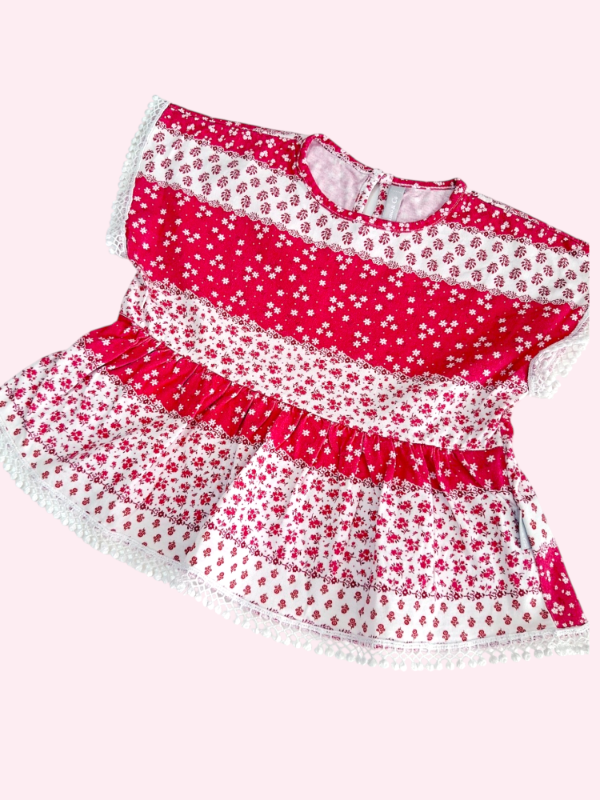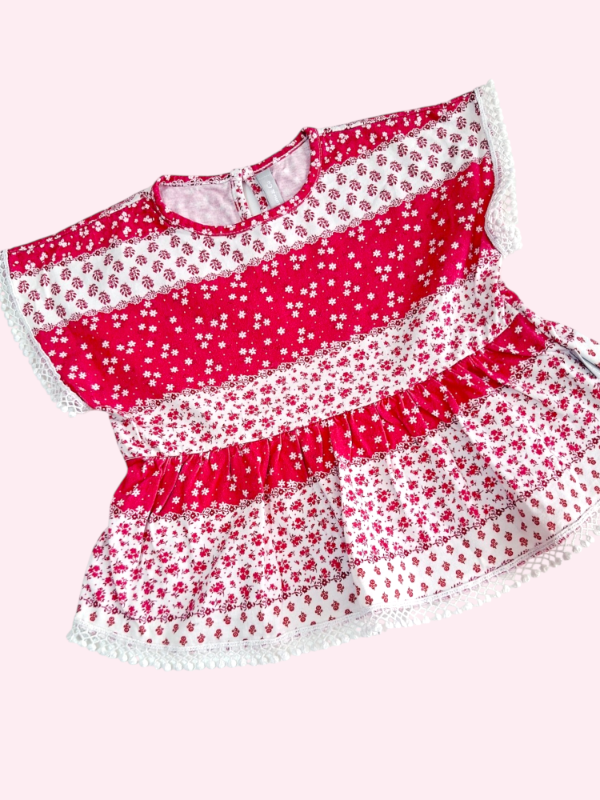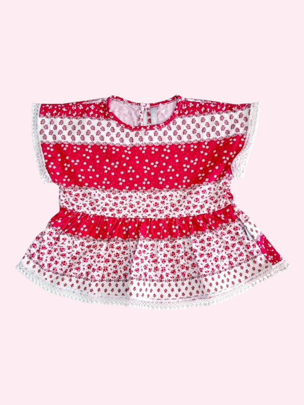 Remera manga corta roja y blanco Mimo 2 años