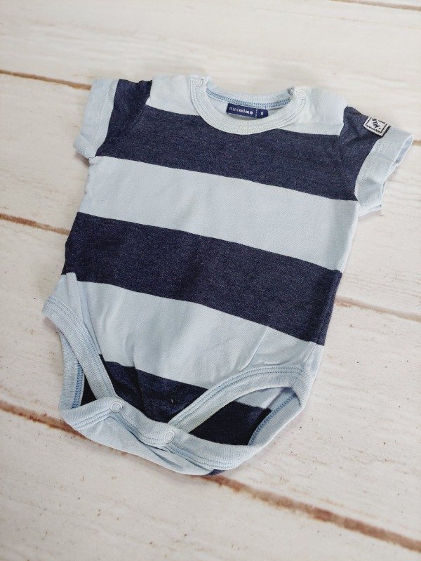 Body rayado celeste y gris Mimo 3/6 meses