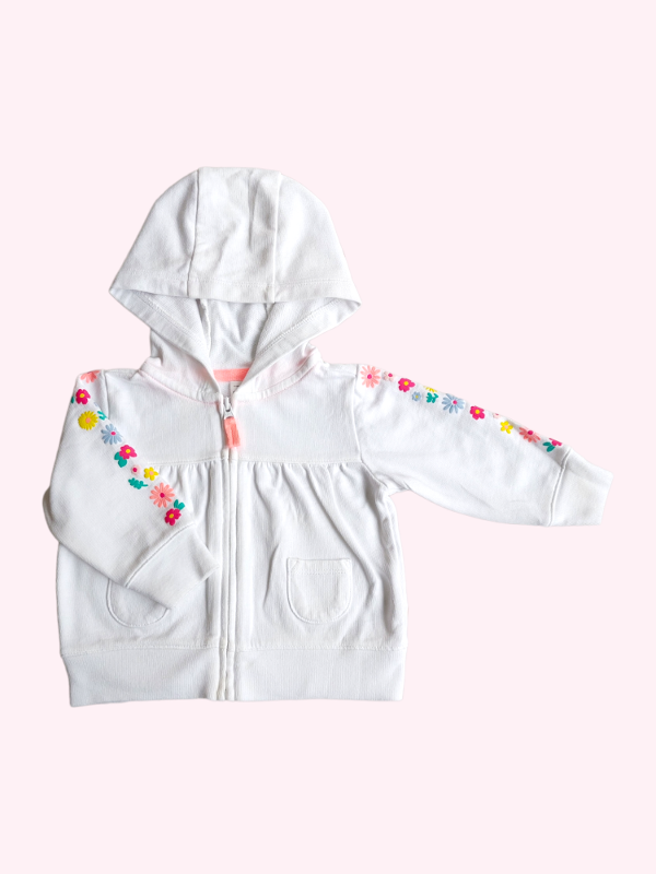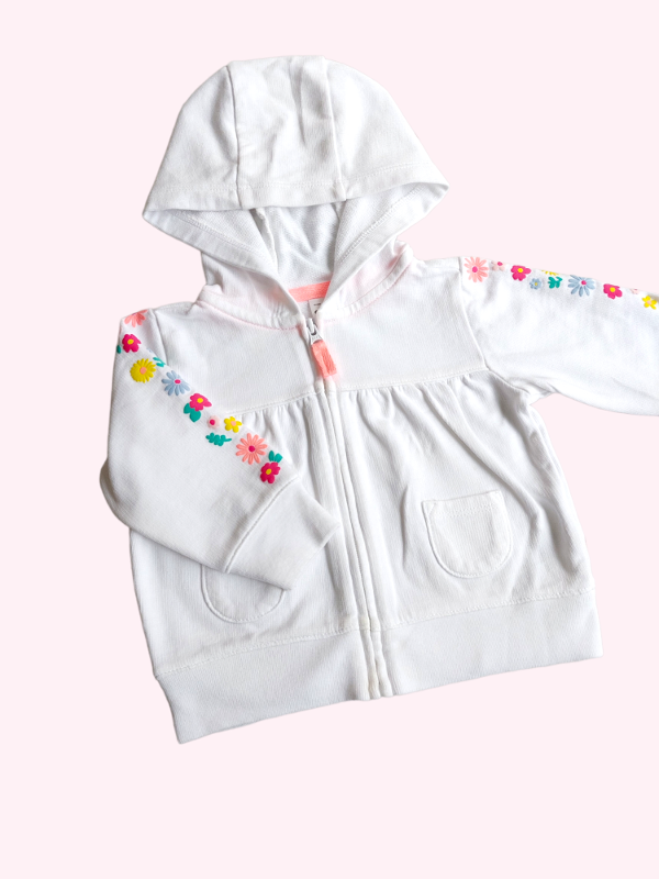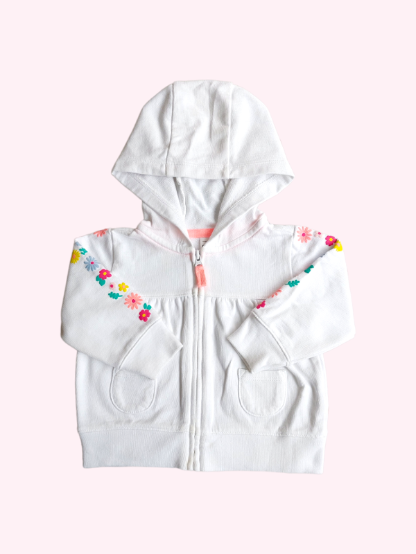 Camperita algodón blanca con flores en manga Carters 3 meses