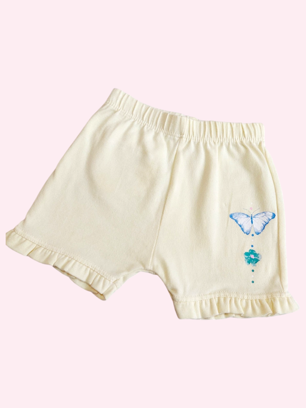 Short de algodón amarillo con voladitos y mariposa Advanced 3 meses
