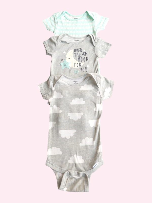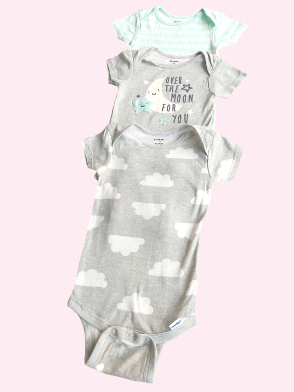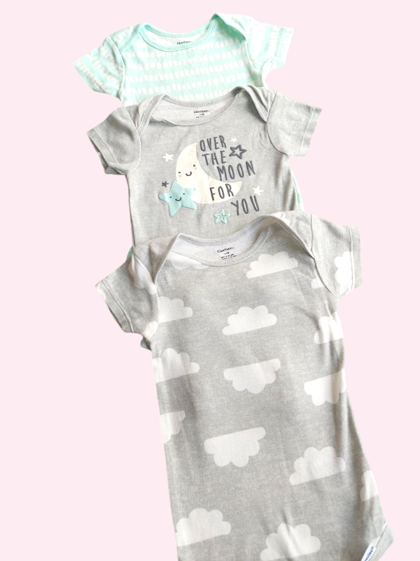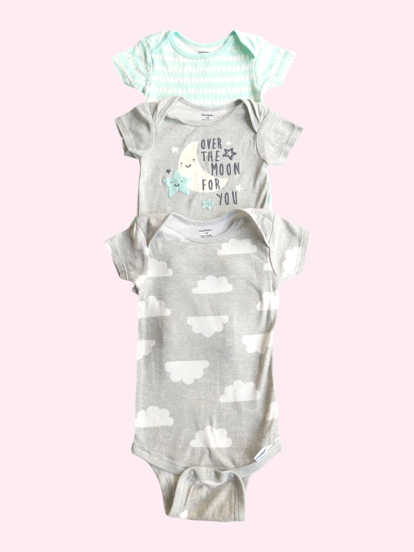 Trío bodies manga corta luna, manchitas y nubes Gerber 3/6 meses NUEVOS