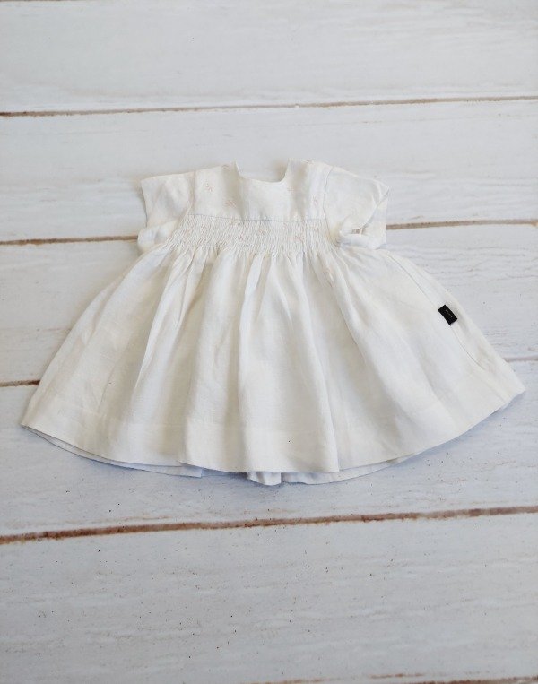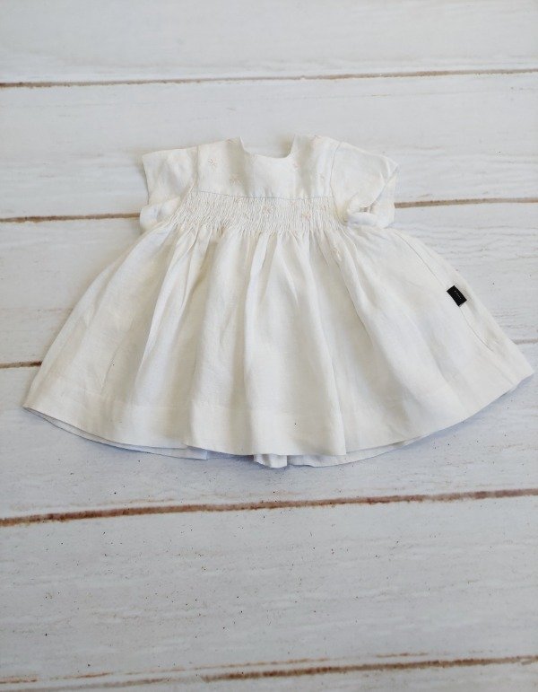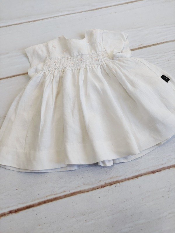 Vestido blanco con flores rosas bordadas y frunce elástico Akiabara 3 meses