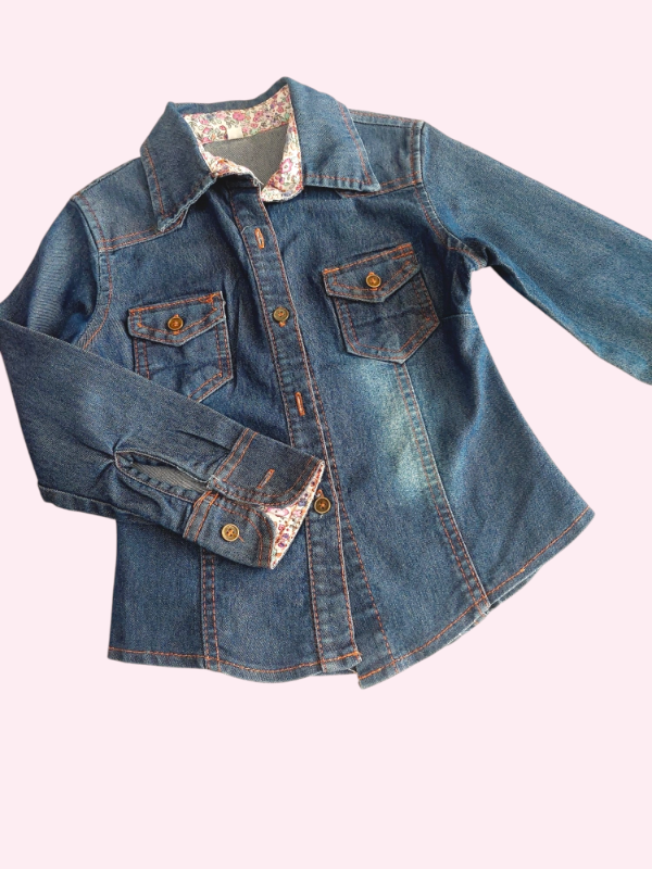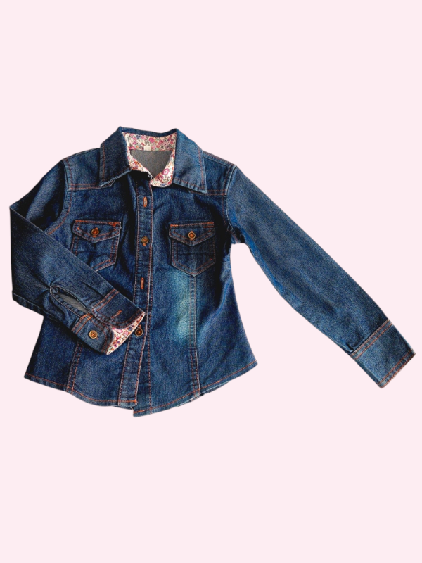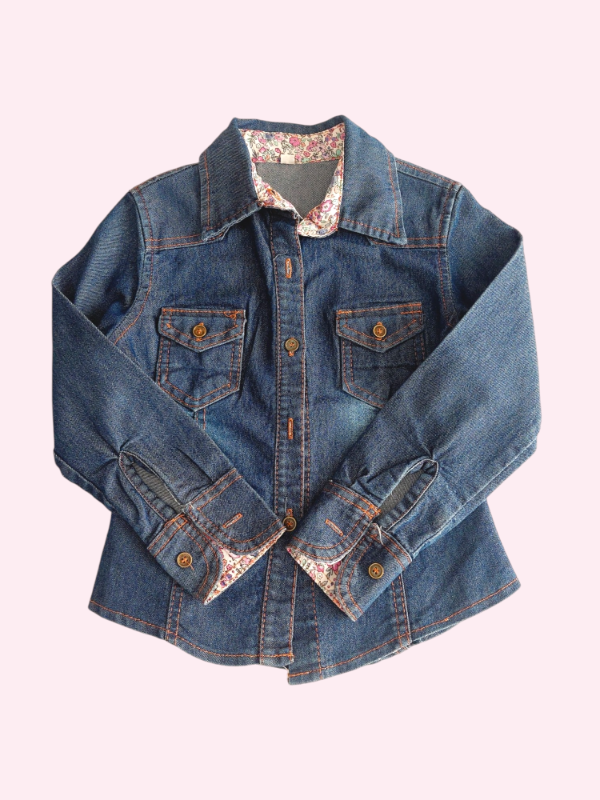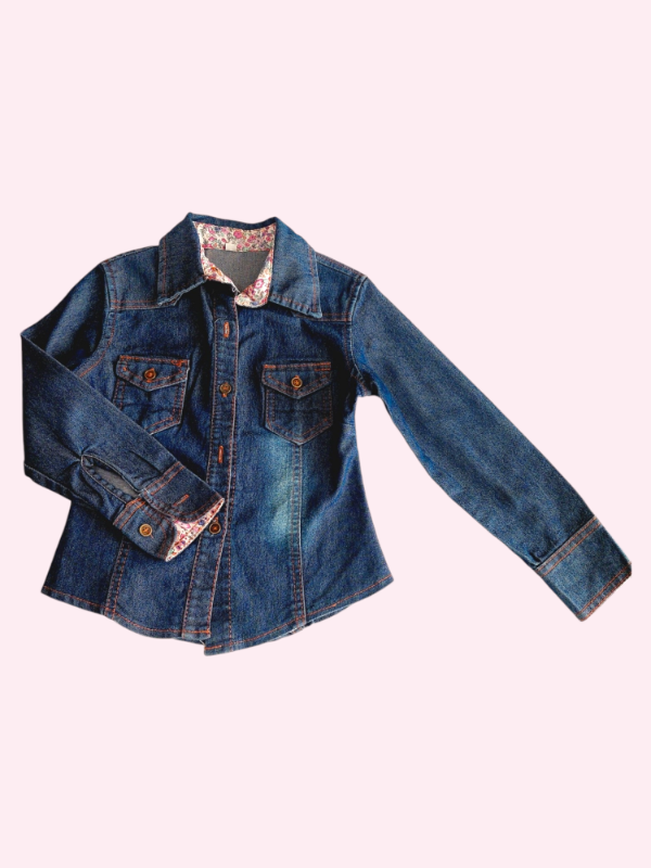 Camisa de jean oscura entallada con cuello de flores 4 años
