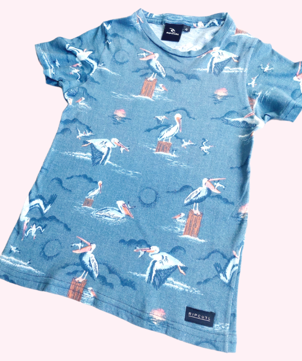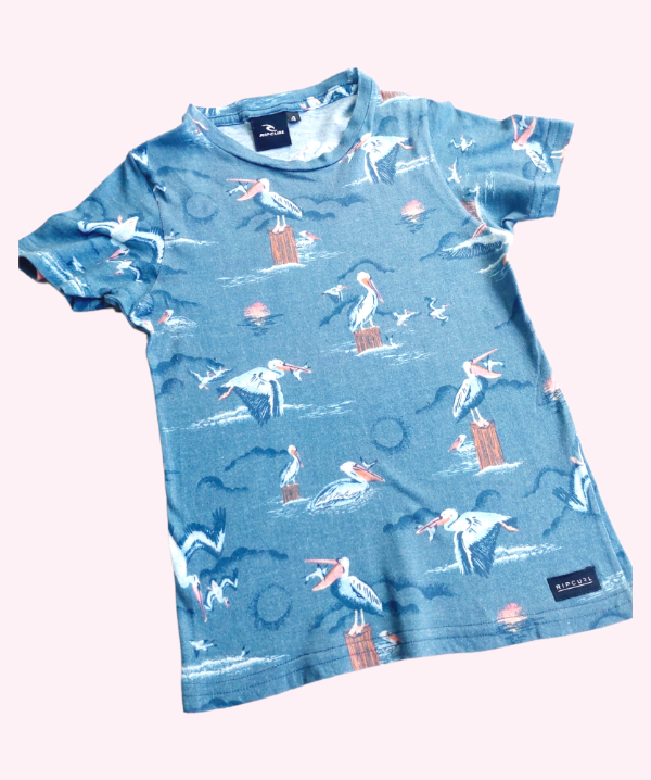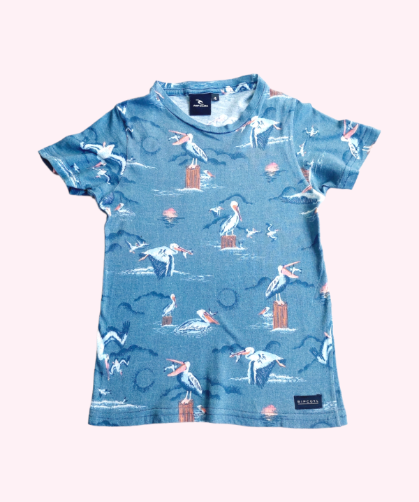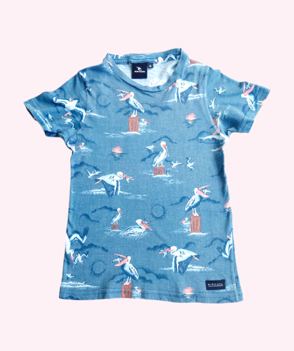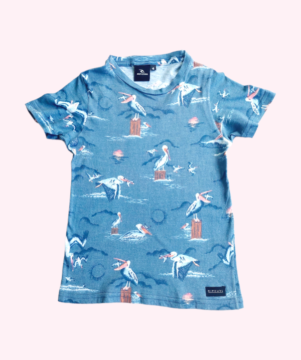 Remera manga corta azul melange con flamenco Rip Curl 4 años