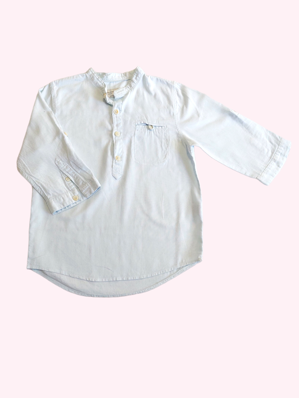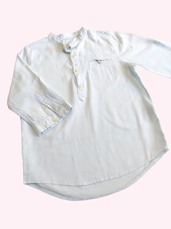 Camisa cuello mao con botones color aqua Zara 6 años
