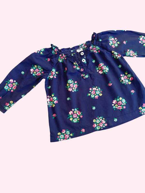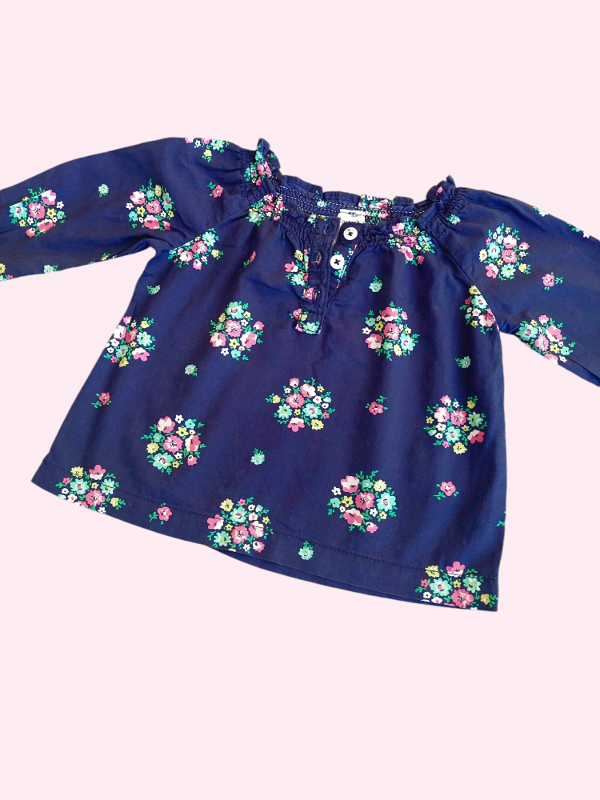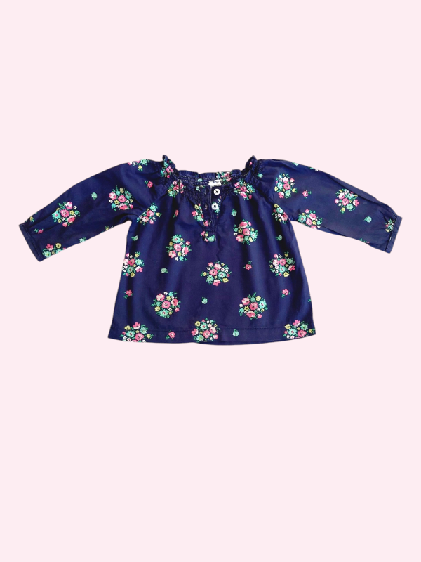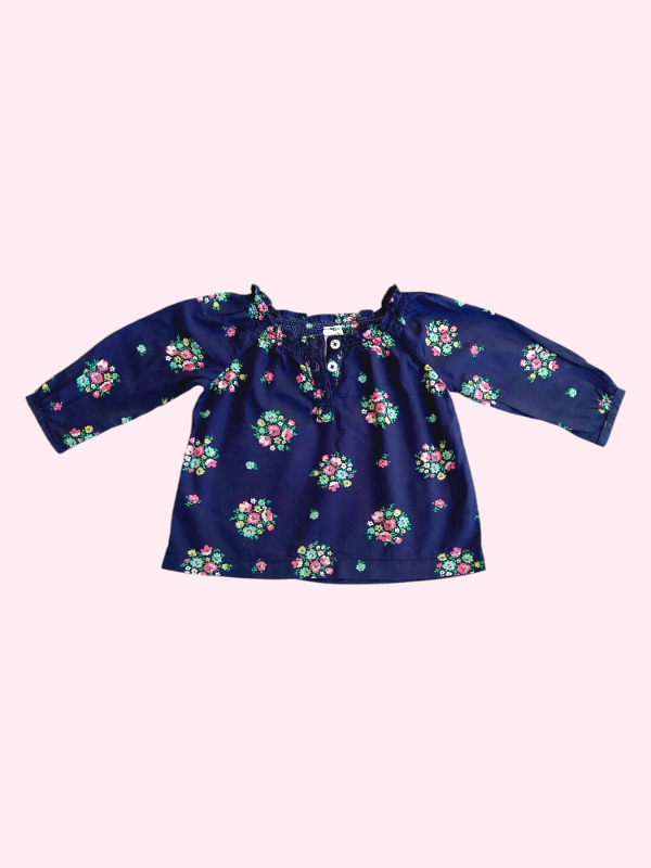 Blusa manga larga azul con florcitas de colores Carters 6 meses