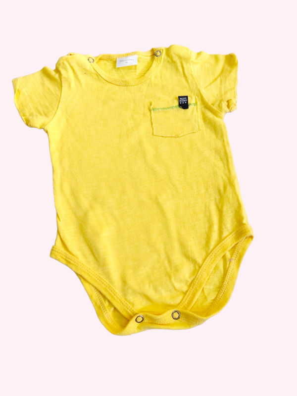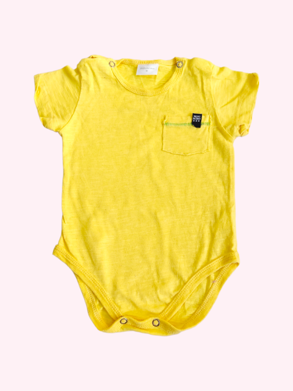 Body manga corta amarillo con bolsillo Mimo 6/9 meses