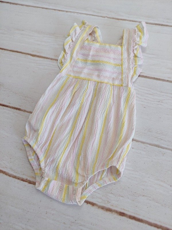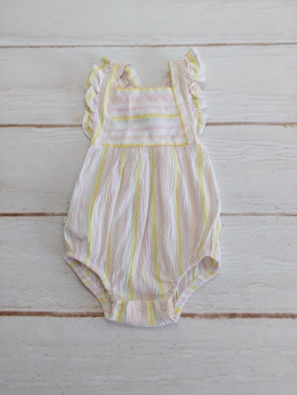 Body solerito rayado blanco rosa y amarillo Mimo 6/9 meses