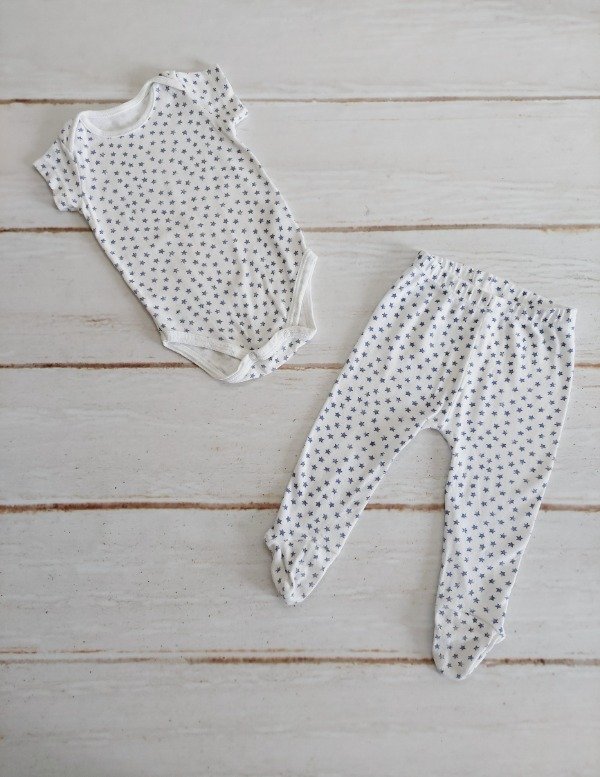 Conjunto body y ranita blanco con estrellas Mimo 6/9 meses