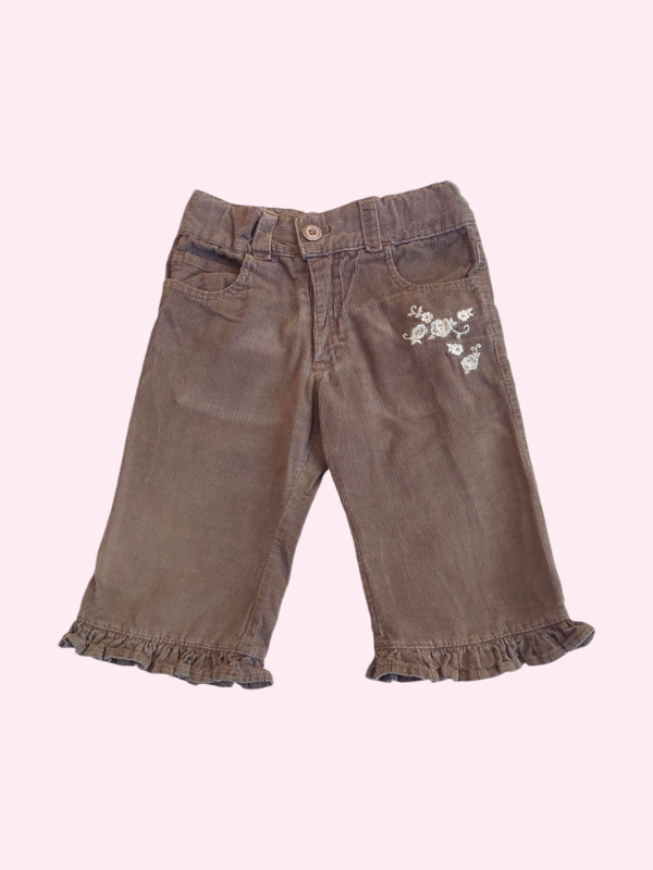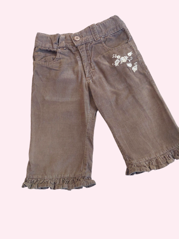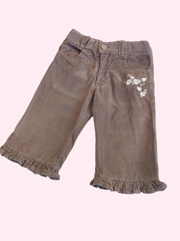 Pantalón ancho de corderoy marrón con flores bordadas Cheeky 6/9 meses