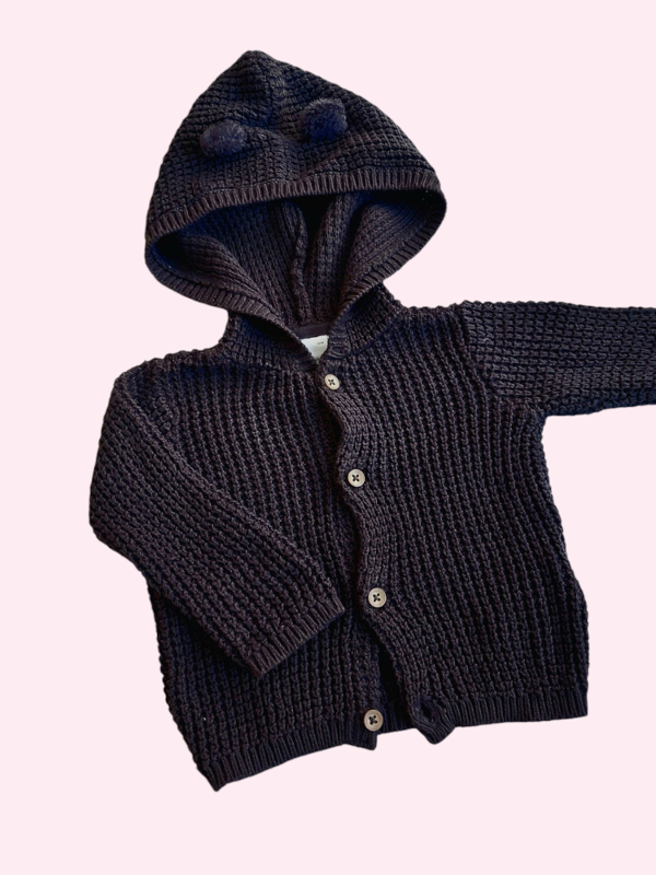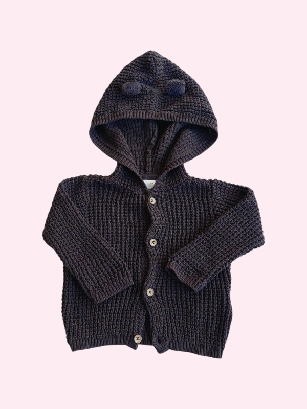Saquito con capucha tejida gris oscura Carters 6 meses