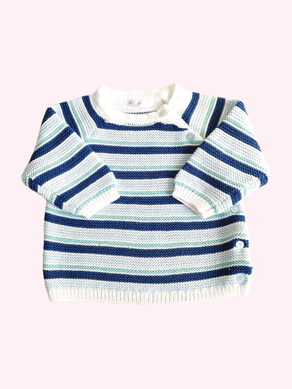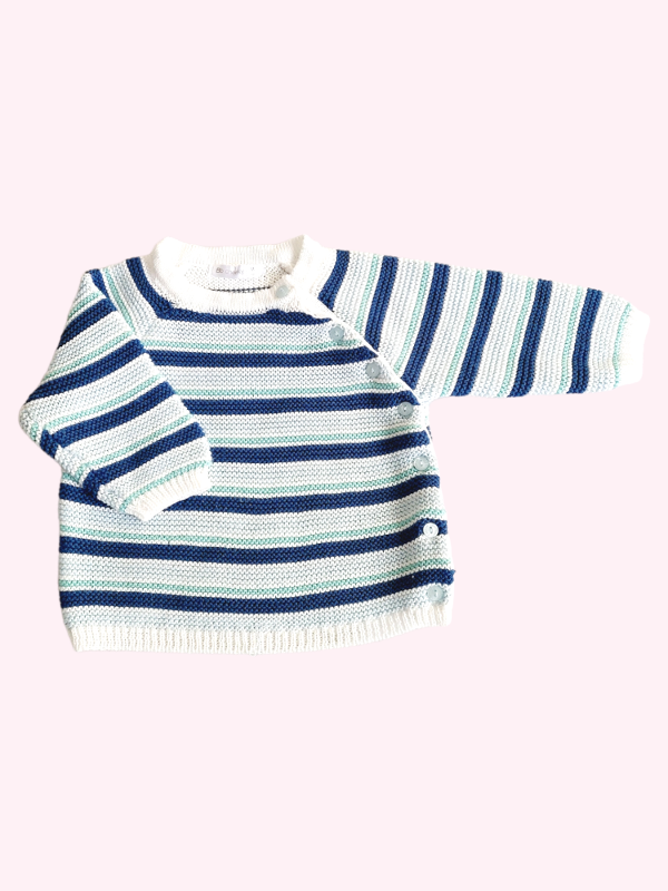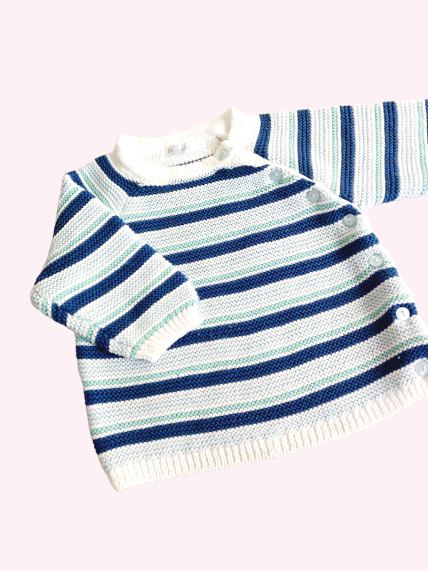 Sweater rayado azul celeste y verde con botones Cheeky 6/9 meses
