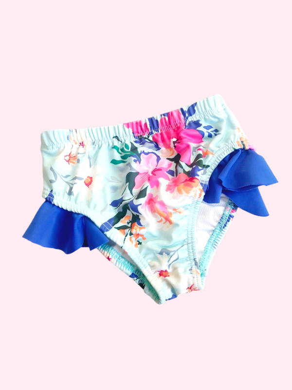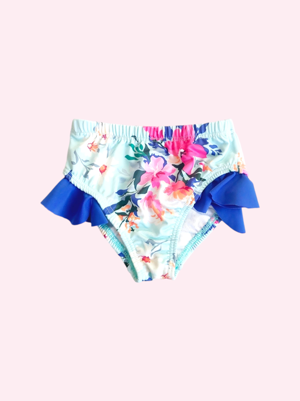 Traje de baño (parte de abajo) turquesa con flores Mulet 6/9 meses NUEVA