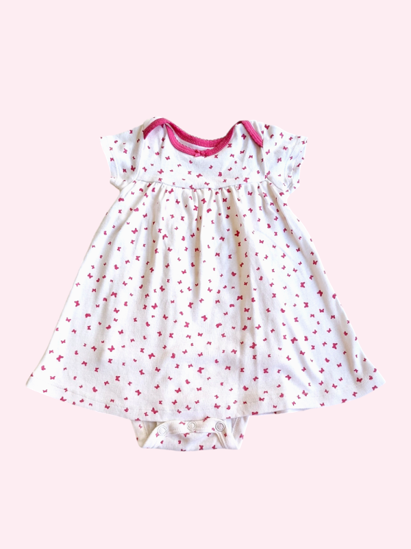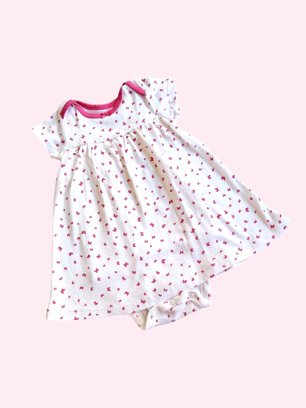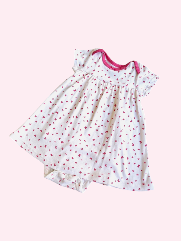 Vestido manga corta de algodón con body blanco con moños Carters 6 meses