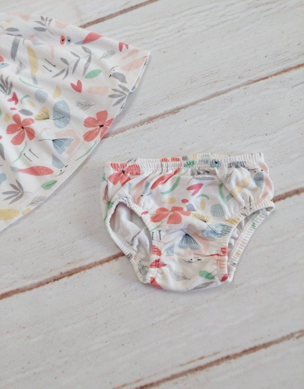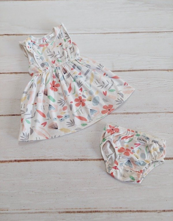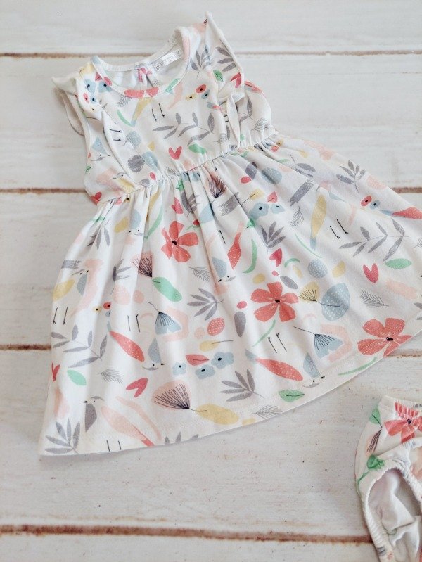 Vestido sin mangas blanco con flores y pájaros y bombachudo Cheeky 6/9 meses