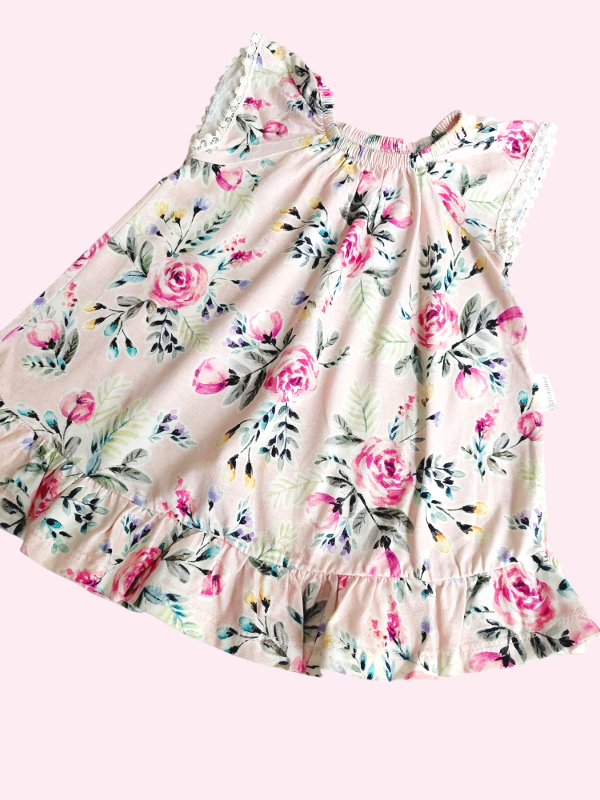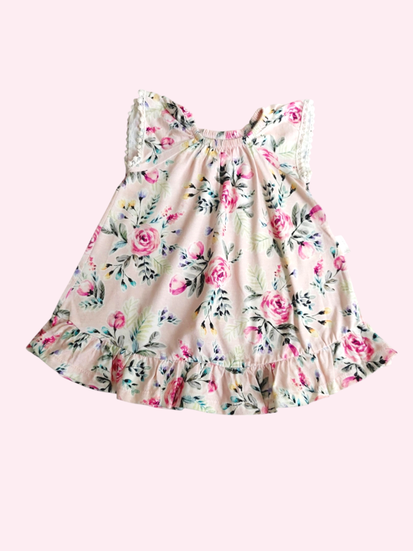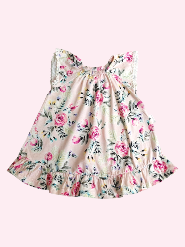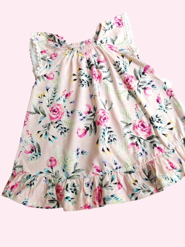 Vestido solero con manguitas rosa con flores Mimo 6/9 meses