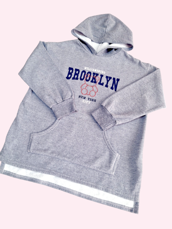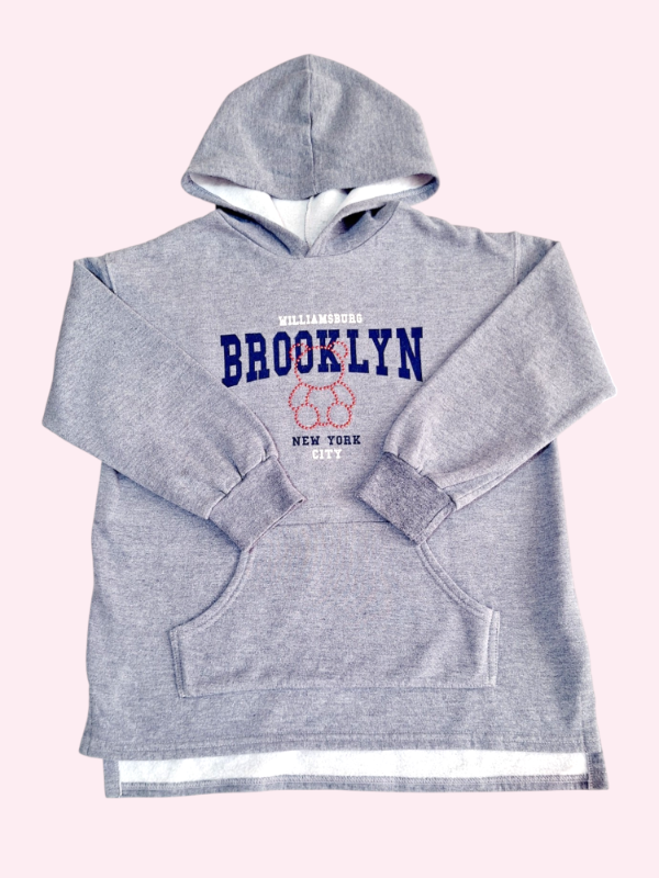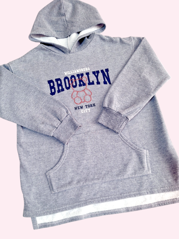 Buzo largo gris con capucha con osito Cheeky 8 años
