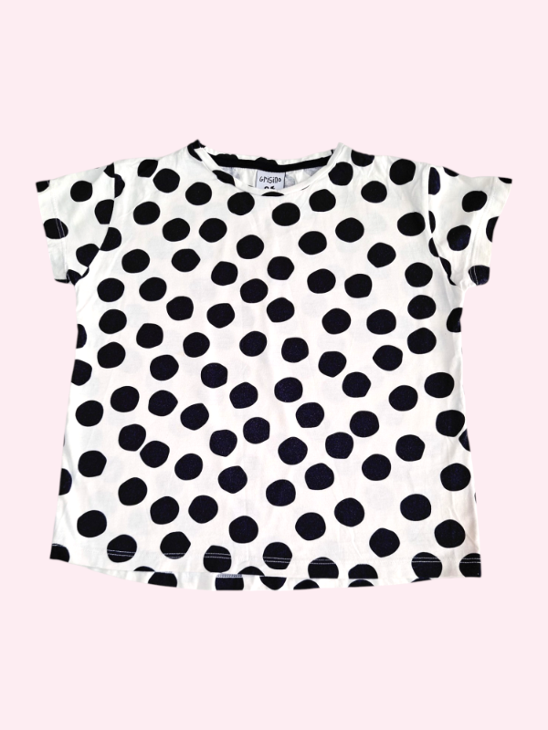 Remera manga corta blanca con lunares negros Grisino 8 años