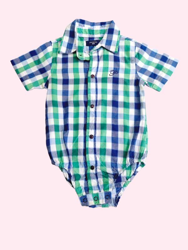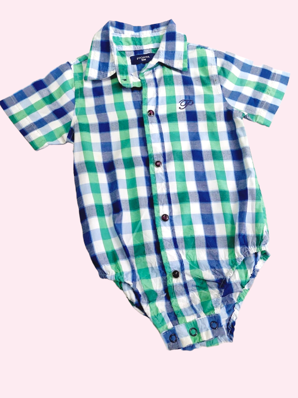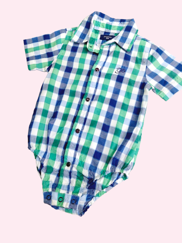Body camisa manga corta cuadrille verde azul y blanco Pioppa 9 meses