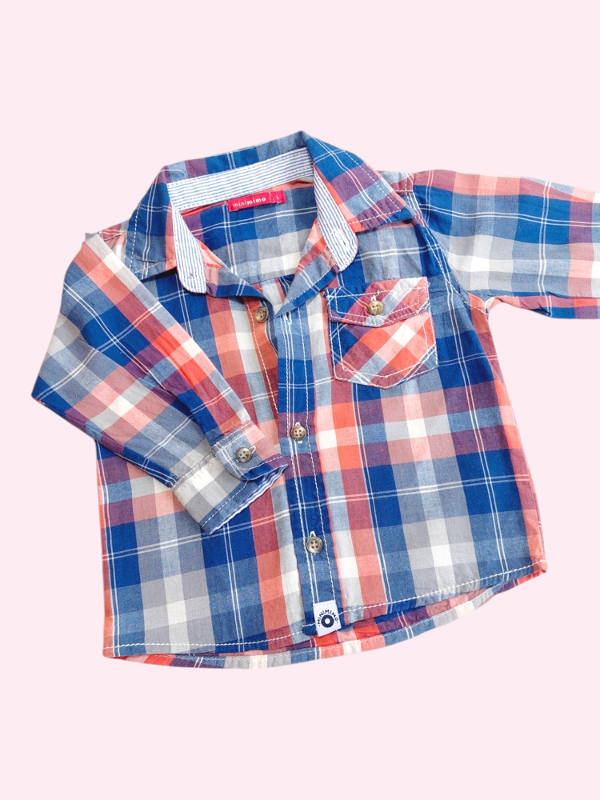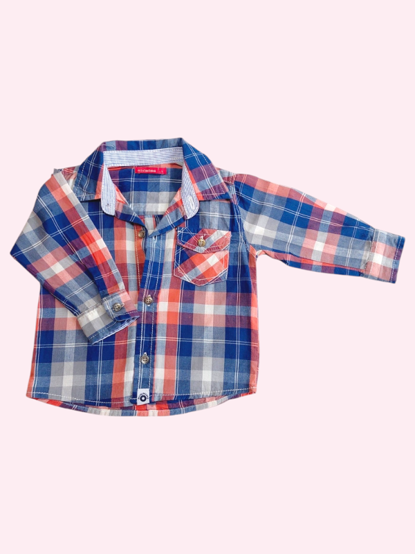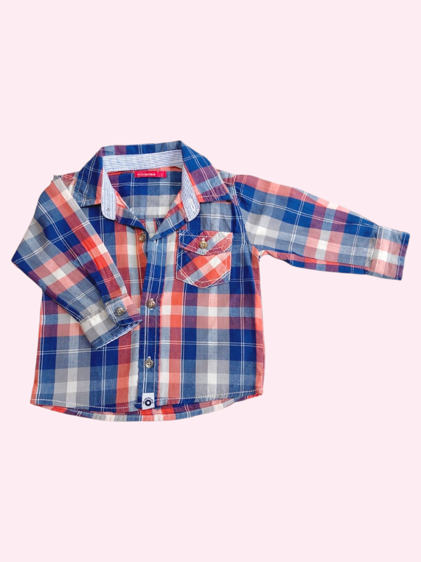 Camisa manga larga cuadrille azul y naranja Mimo 9/12 meses