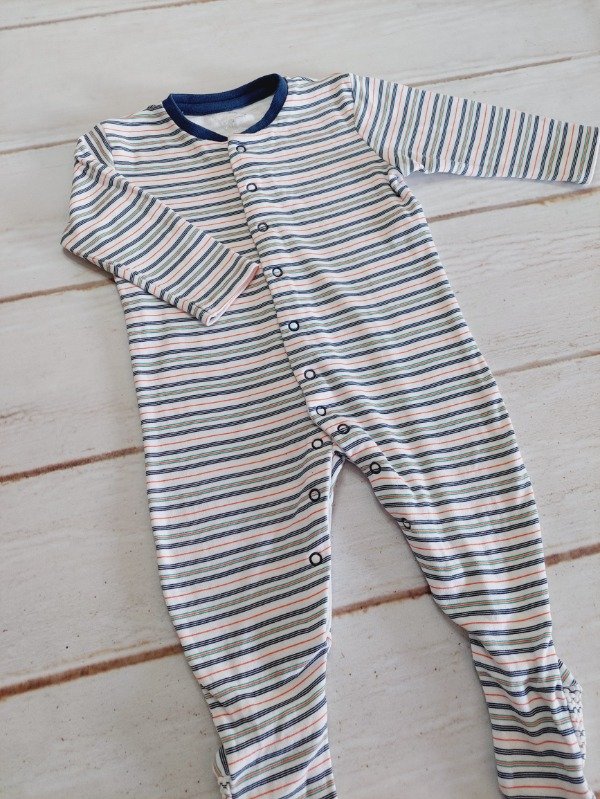 Enterito con pie rayado azul y blanco con naranja EarlyDays 9/12 meses