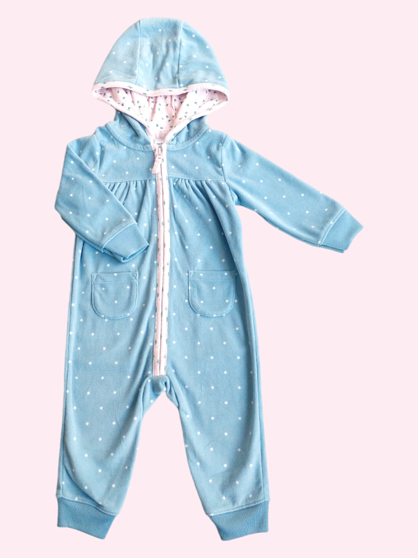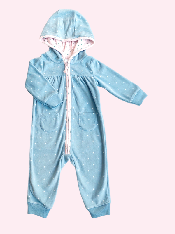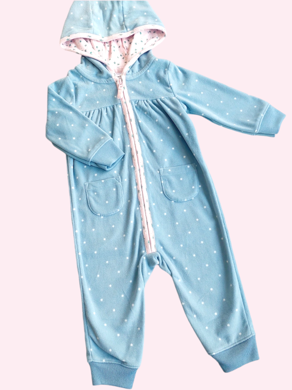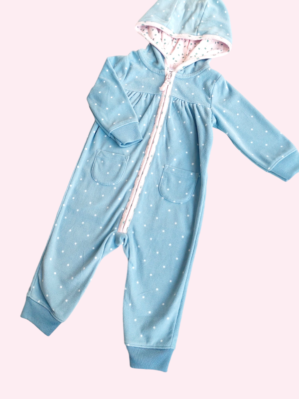 Enterito micropolar celeste con lunares y cierre rosa Carters 9 meses NUEVO