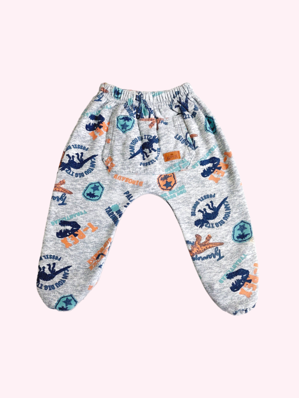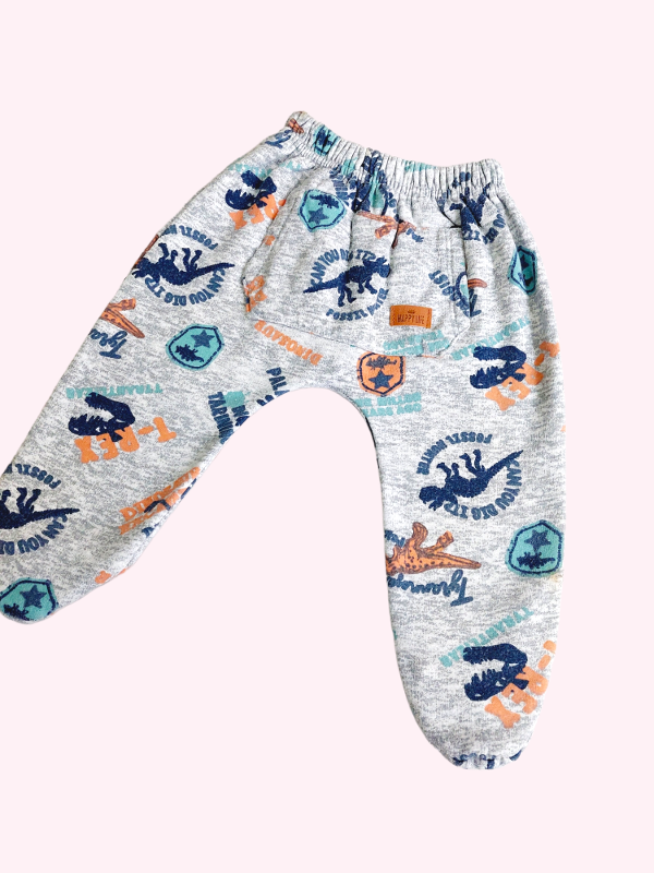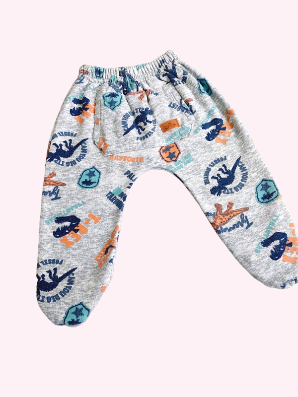 Jogging frizado con bolsillo gris con dinos de colores Happy Life 9 meses