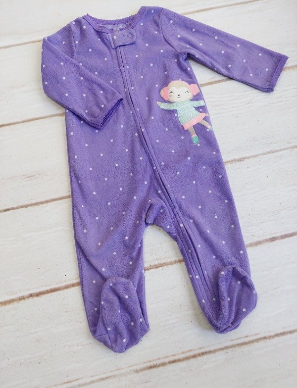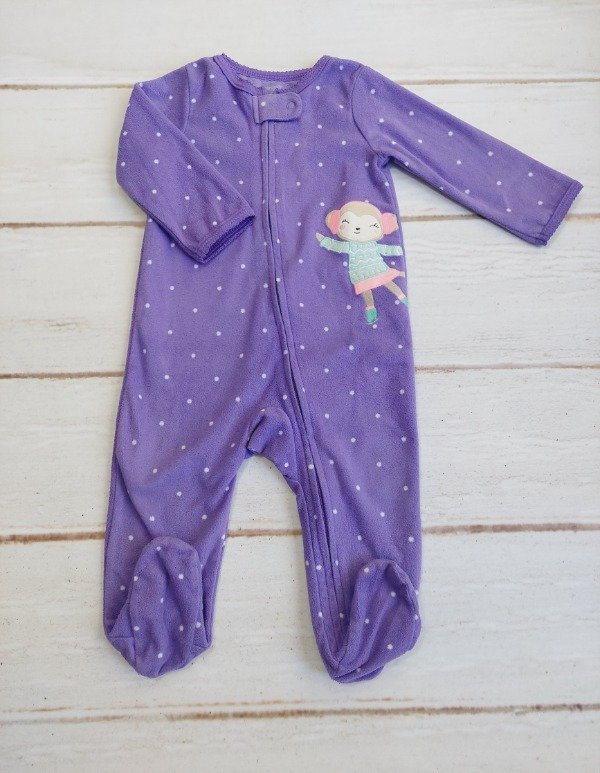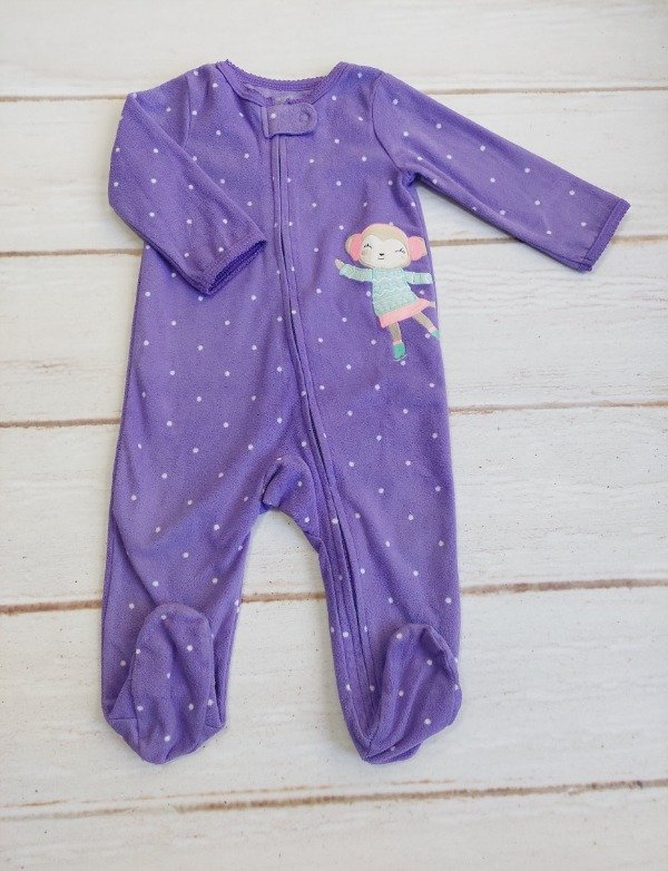 Pijama micorpolar violeta con lunares blanco y osito Carters 9 meses