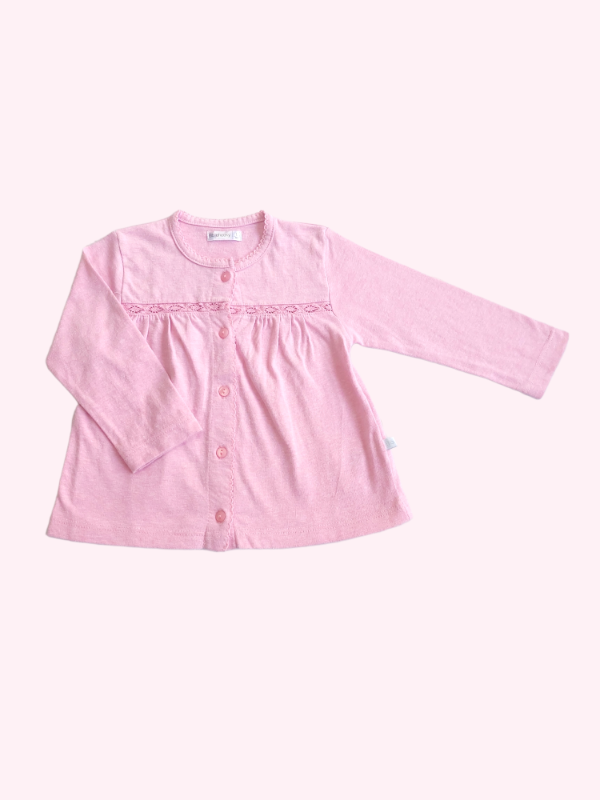 Saquito de algodón rosa melange con guarda Cheeky 9/12 meses