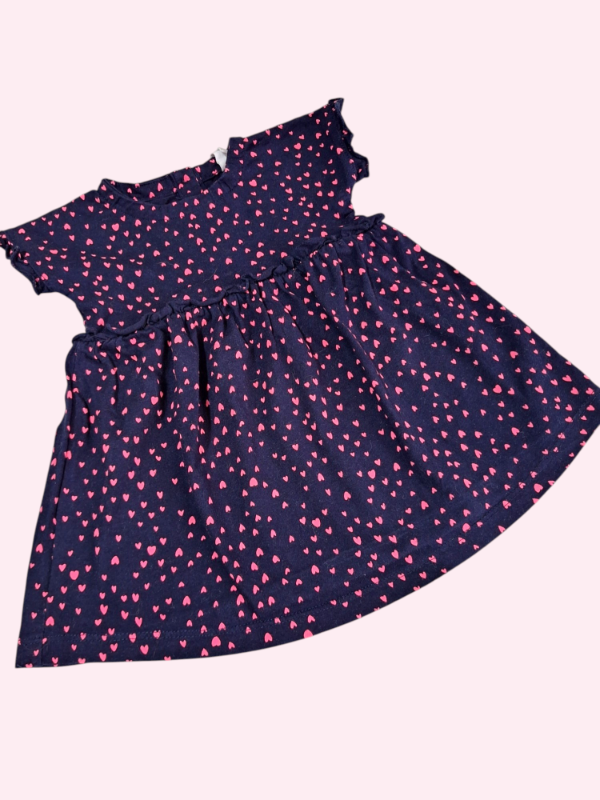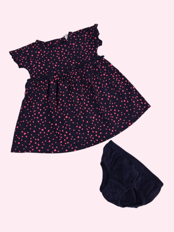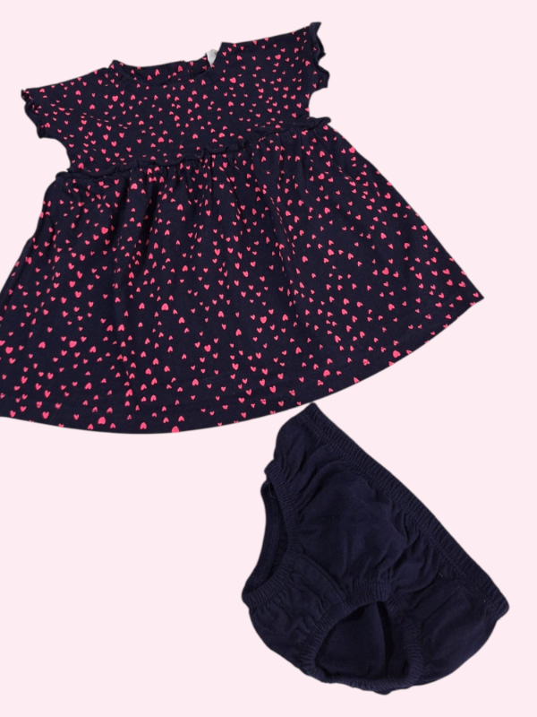 Vestido con bombachudo azul oscuro con corazones rosas GAP 9/12 meses