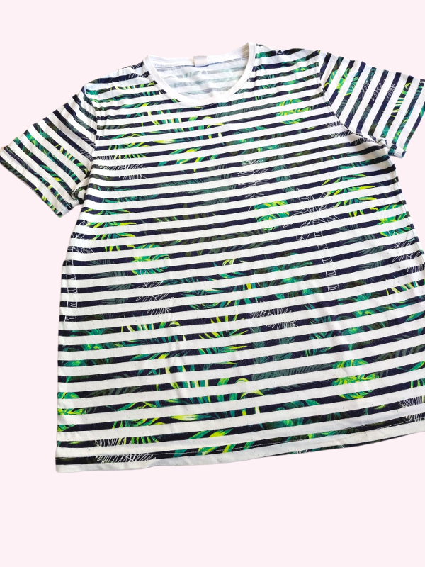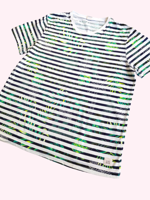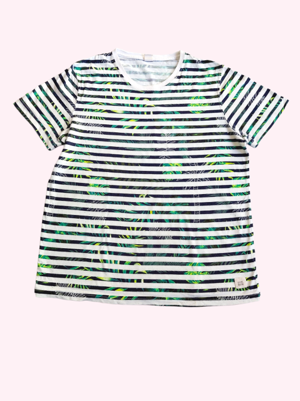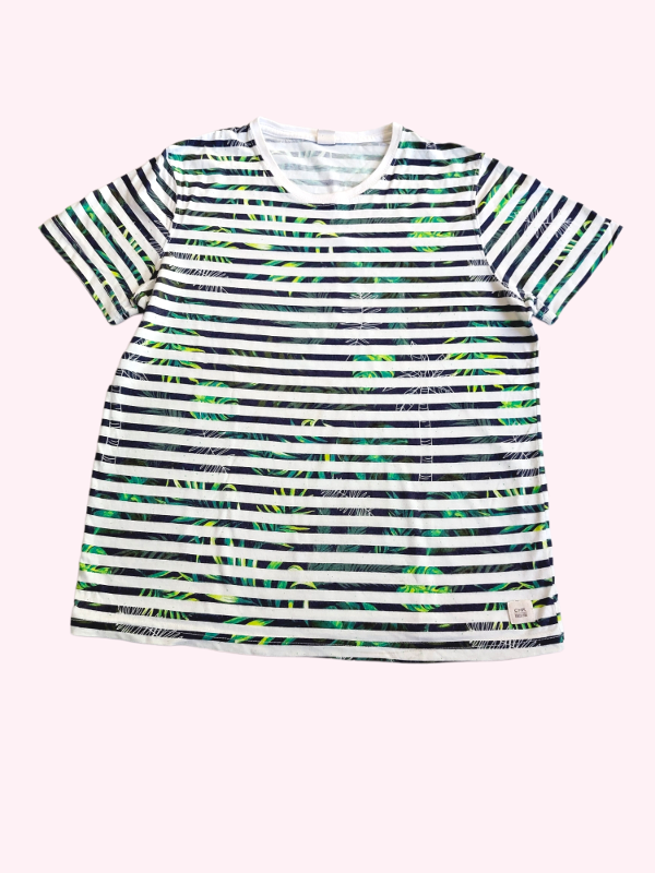 Remera manga corta rayada blanca con hojas Cheeky 12/14 años