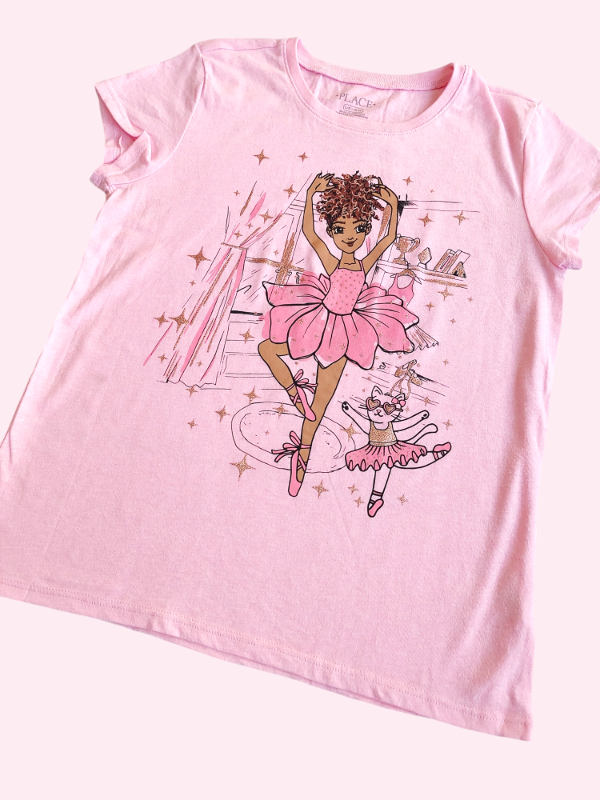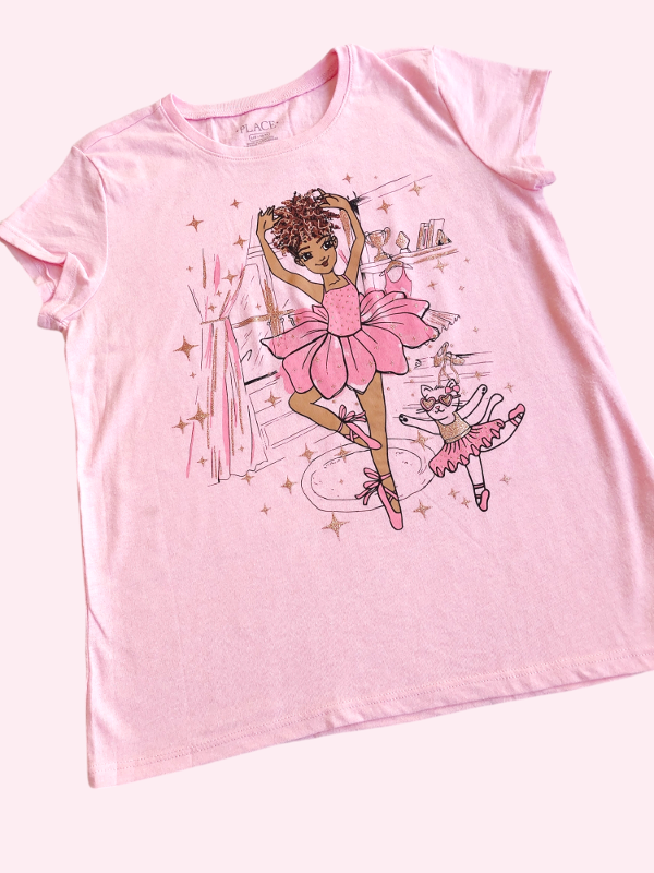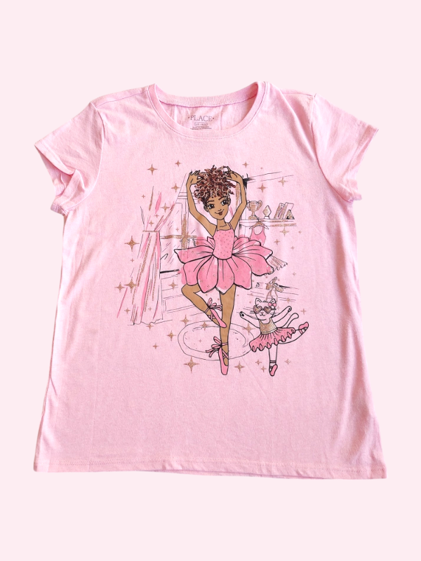 Remera manga corta rosa melange con bailarina Place 10/12 años